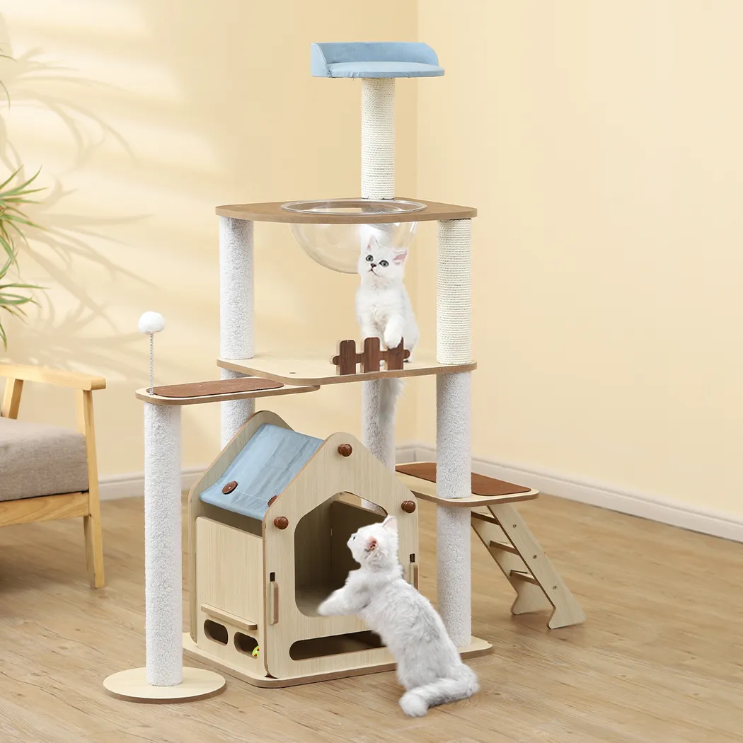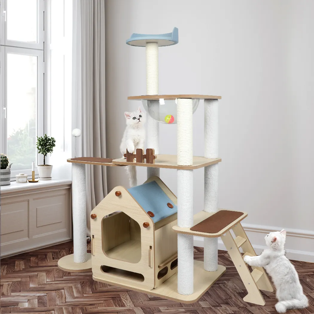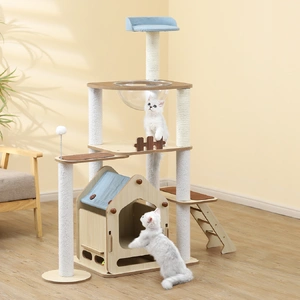 - Sturdy wooden cat tree