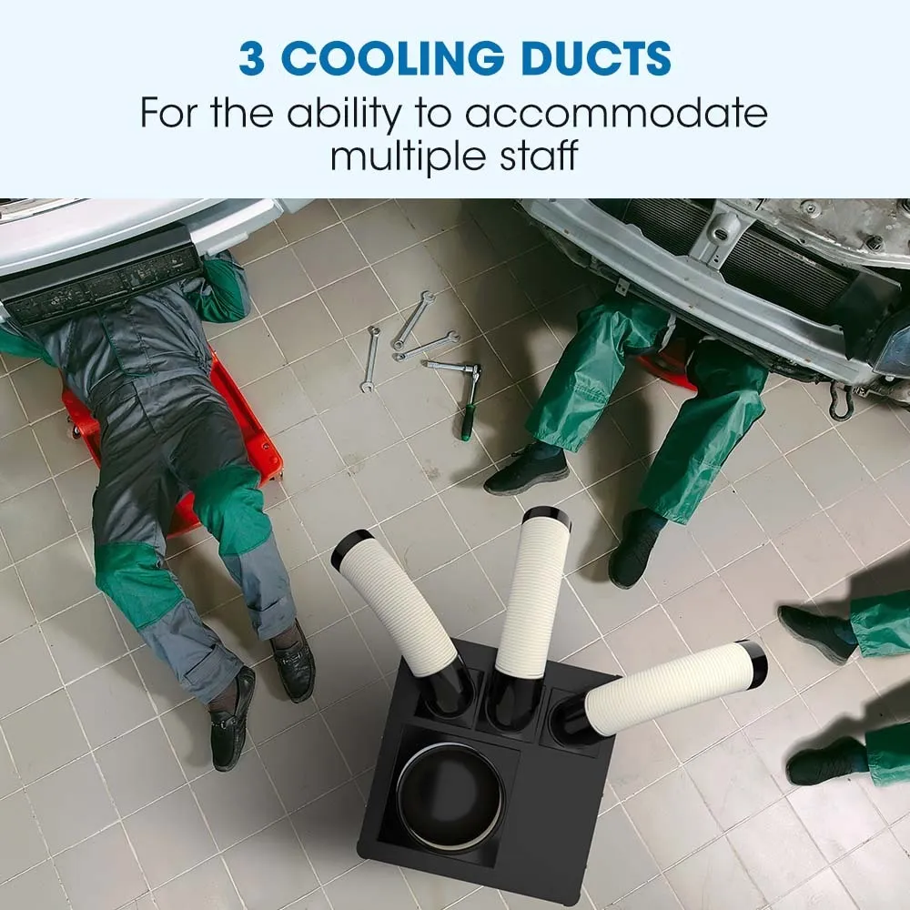 With 3 rotatable and angle adjustable ducts you can direct the powerful airflow to multiple workers or applications such as cooling equipment.