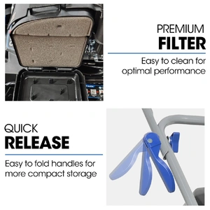 - Quick-release folding handle for more compact storage
