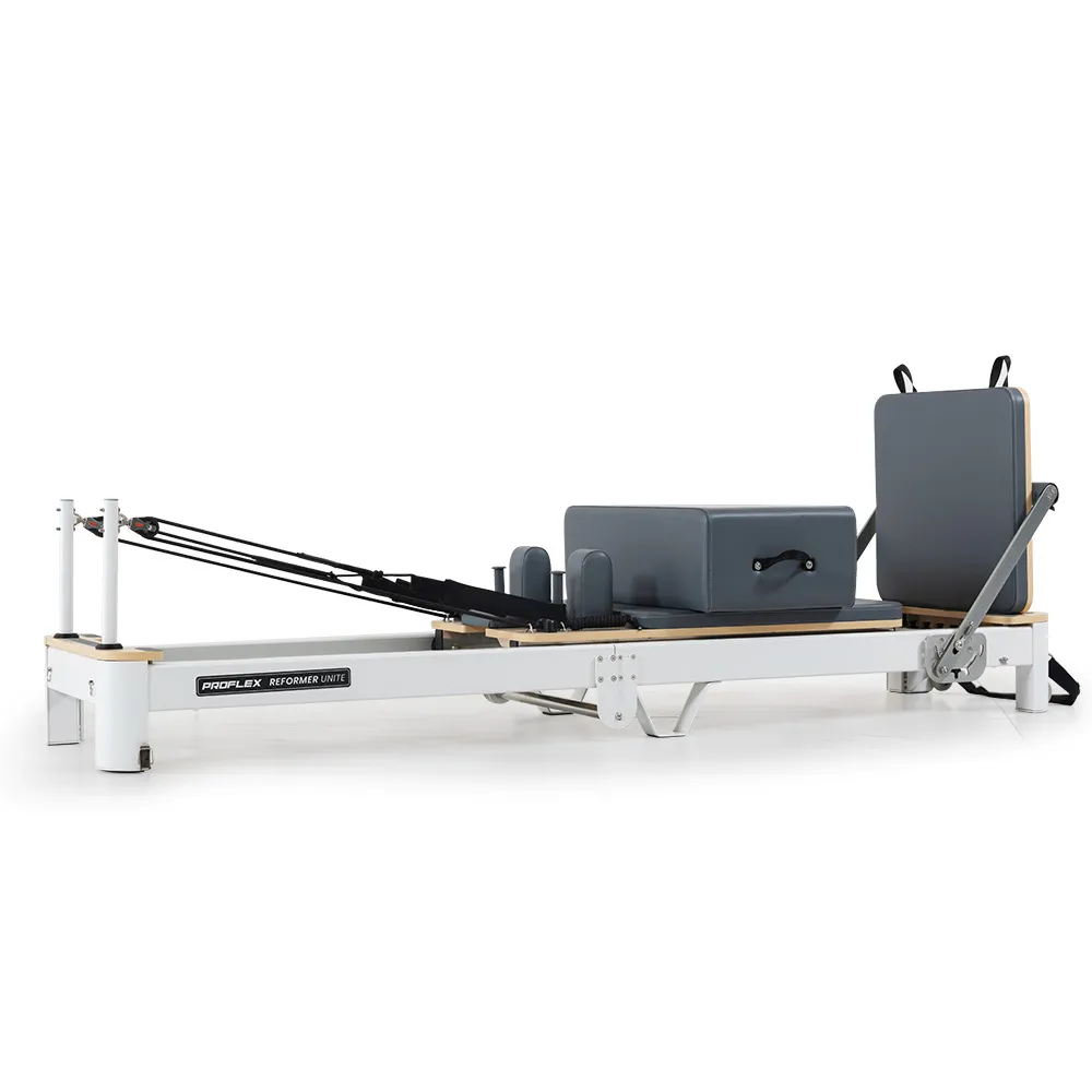 The Proflex Reformer Unite is meticulously crafted for home enthusiasts, from beginners to experienced users. This reformer merges elegance with functionality and durability, all within a convenient, folding design, continuing the 100 year history of Pilates using a reformer.