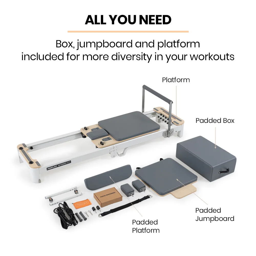 Experience the fusion of form and function with the Proflex Aluminium Pilates Reformer! Get yours today and discover a world of possibilities.