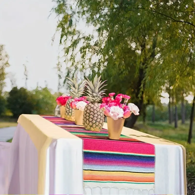 Mexican Style Rainbow Tassel Table Runner - Perfect for Wedding Party Decor