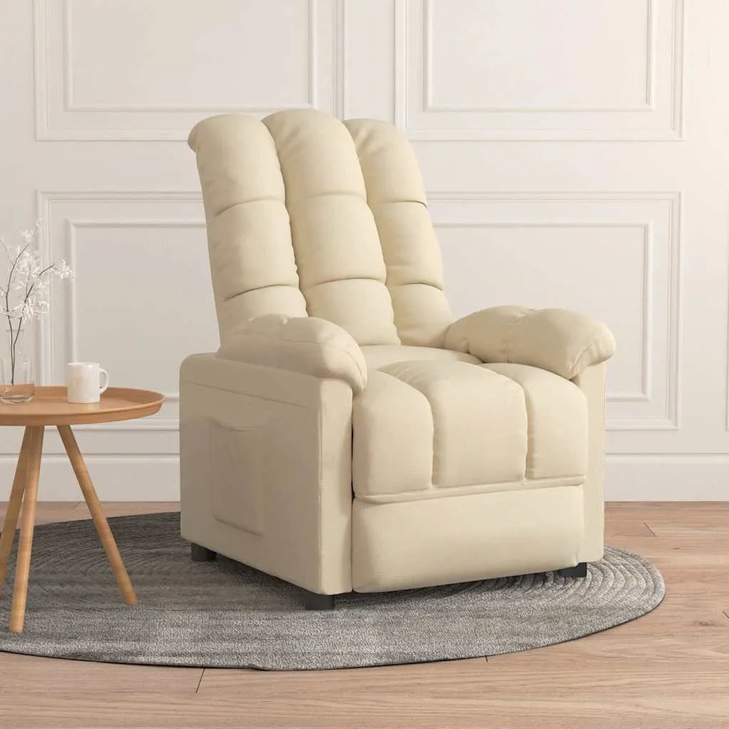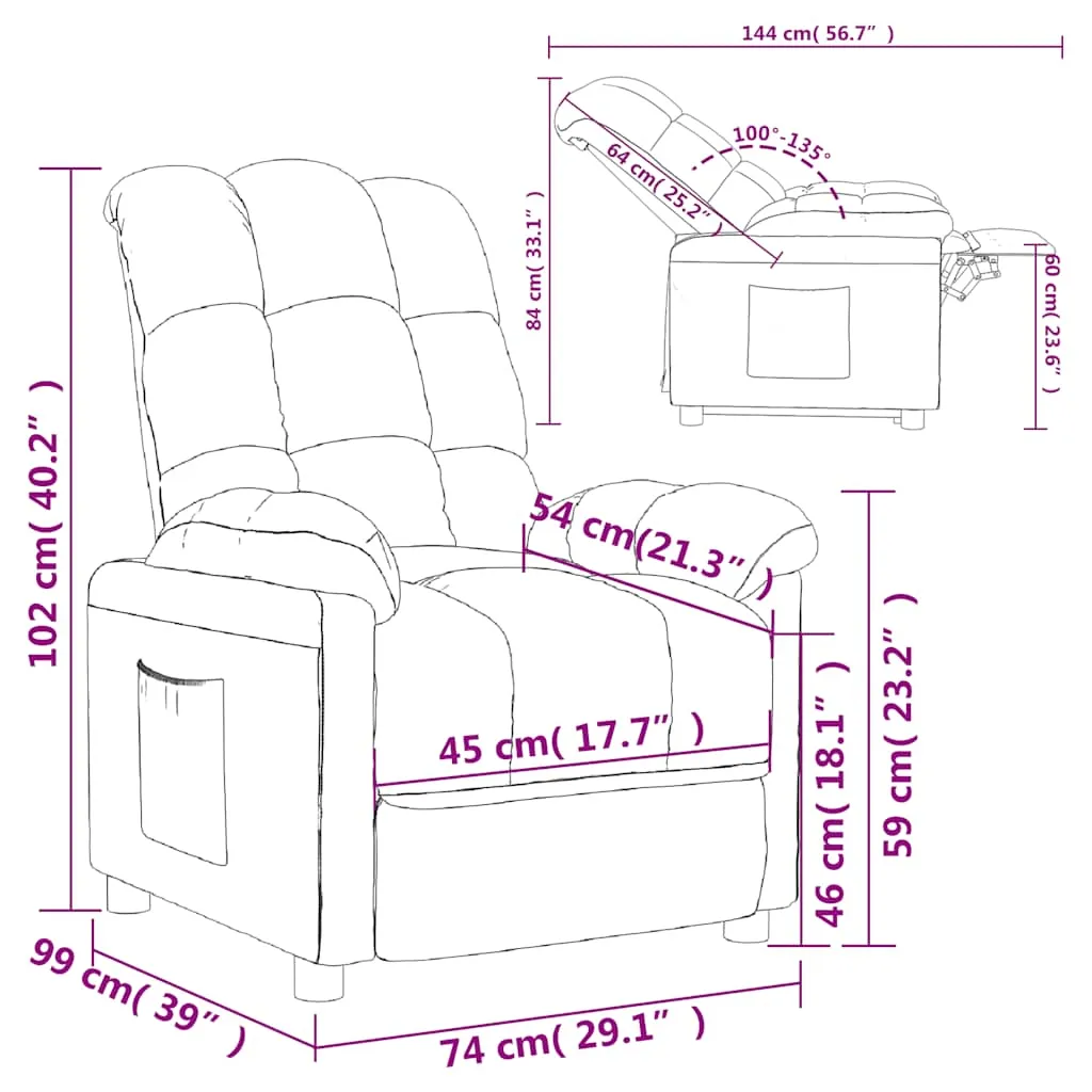 Sit back and drift away in this highly comfortable recliner chair! Manual reclining function: The reclining chair is specially designed with 3 reclining positions so that you can adjust the backrest and footrest manually as per your comfort.Comfortable seat experience: The thickly padded seat, backrest, and wide armrests covered in fabric provide a cosy and warm sensation, making you feel embraced while seated. The fabric features a simple and clean look, and is breathable and durable.Solid and stable frame: The frame made of wood and metal provides a strong structure and stability. This reclining armchair is comfortable and durable.