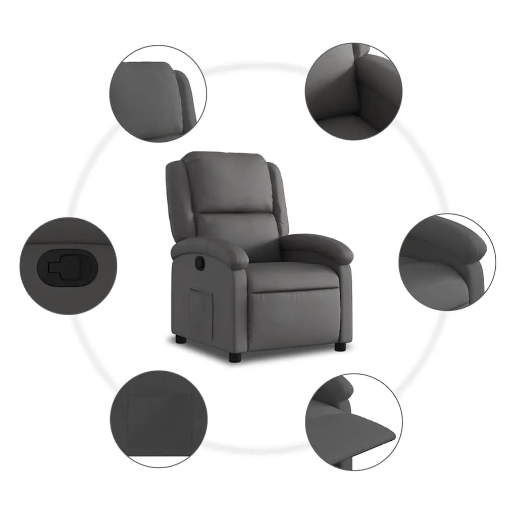 Sit back and drift away in this highly comfortable recliner chair! Manual reclining function: This reclining chair has a handle on the right side. You can manually adjust the footrest and the backrest to any position as per your comfort with a simple pull of the handle. This feature allows for a maximum tilt of 135 degrees. Additionally, the backrest can go quickly back to the original place with an easy pull of the handle.Comfortable seat experience: The thickly padded seat, backrest, and wide armrests covered in real leather provide a cosy sensation, making you feel embraced while seated. Real leather is a naturally timeless material. It can last a lifetime with proper care and maintenance. The smooth surface also gives it a stylish look while ensuring optimal comfort.Convenient side pocket: This armchair has a side pocket for you to keep your essential items within easy reach.Solid and stable frame: The frame made of wood and metal provides a strong structure and stability. This reclining armchair is comfortable and durable.