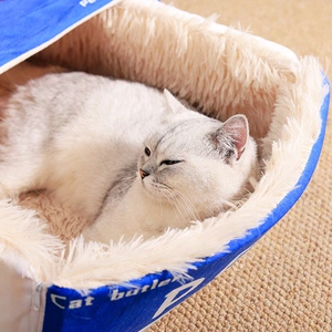 This rectangular pet bed, shaped like a cookie box, offers a cozy, enclosed space for cats and dogs.With a plush, warm interior and a cute, printed exterior, it provides a comfortable hiding spot and sleeping area.Ideal for pets seeking security, it helps retain warmth and reduces anxiety, making it a perfect addition to your home for your furry friends.