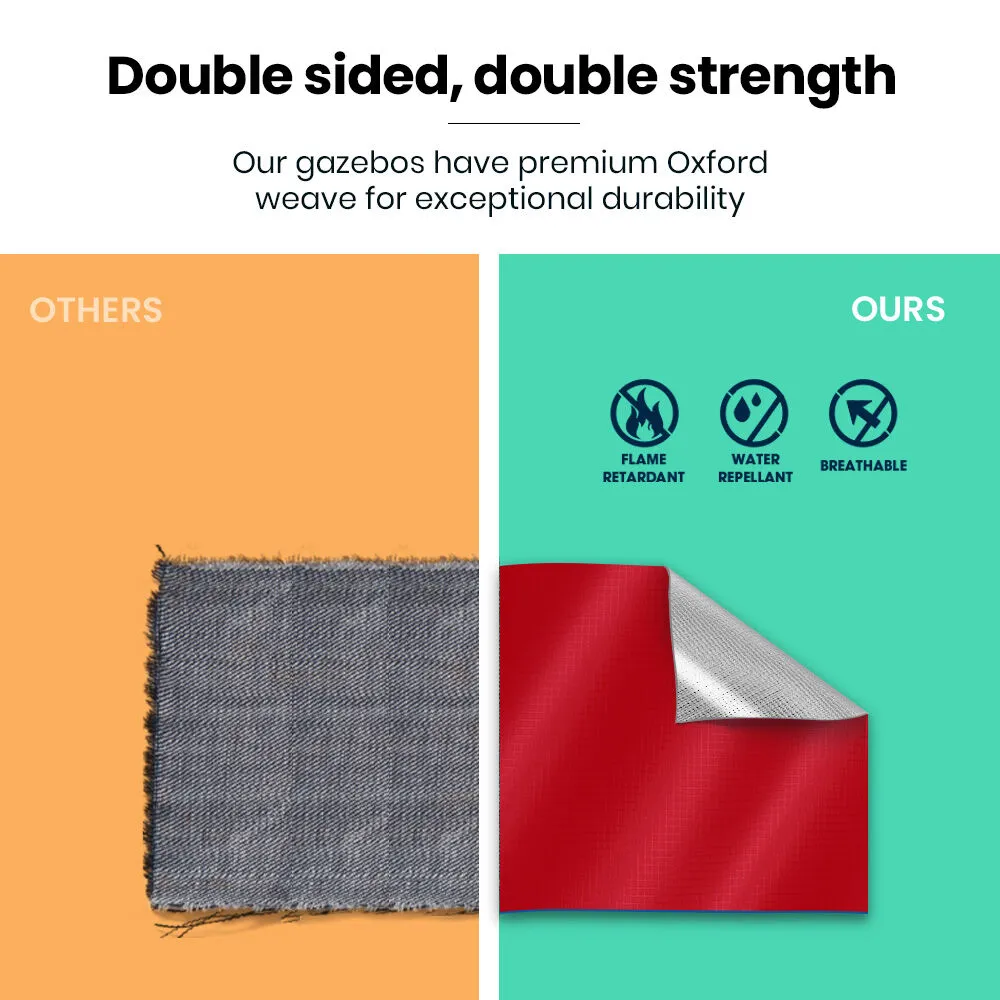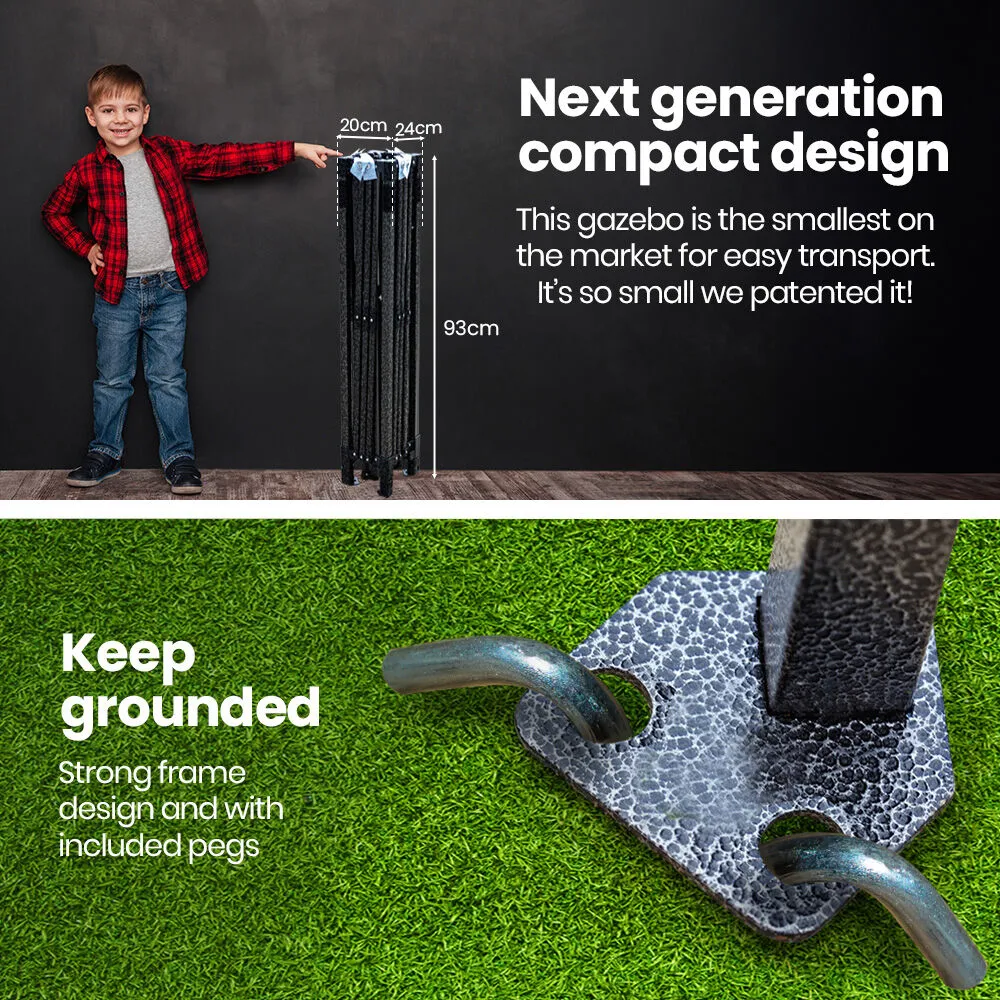 The Red Track 2.2x3.6m Gazebo (with 3 walls included) stands out with the smallest folded size on the market—just 93cm long! This ultra-compact 13kg design makes it incredibly easy for one person to carry, transport, and store, offering unmatched convenience compared to bulkier alternatives. Whether you're short on space or always on the move, this gazebo’s design ensures portability without compromise.