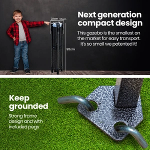 The Red Track 3x3m Gazebo stands out with the smallest folded size on the market—just 93cm long! This ultra-compact 12kg design makes it incredibly easy for one person to carry, transport, and store, offering unmatched convenience compared to bulkier alternatives. Whether you're short on space or always on the move, this gazebo’s design ensures portability without compromise.
