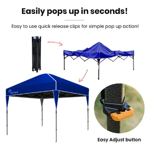 With UV and water-resistant materials, it offers reliable protection from sun and rain, making it ideal for weddings, markets, and outdoor gatherings. The steel frame and nylon joints are supremely durable, and ground pegs and guy-ropes are included for optimal stability. The carry bag makes packing and storage effortless. Quick to set up and fold away, it’s built for convenience and versatility.