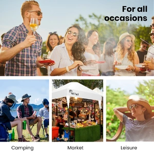 With UV and water-resistant materials, it offers reliable protection from sun and rain, making it ideal for weddings, markets, and outdoor gatherings. The three included walls provide added flexibility and privacy, adapting to your needs. The steel frame and nylon joints are supremely durable, and ground pegs and guy-ropes are included for optimal stability. The carry bag makes packing and storage effortless. Quick to set up and fold away, it’s built for convenience and versatility.