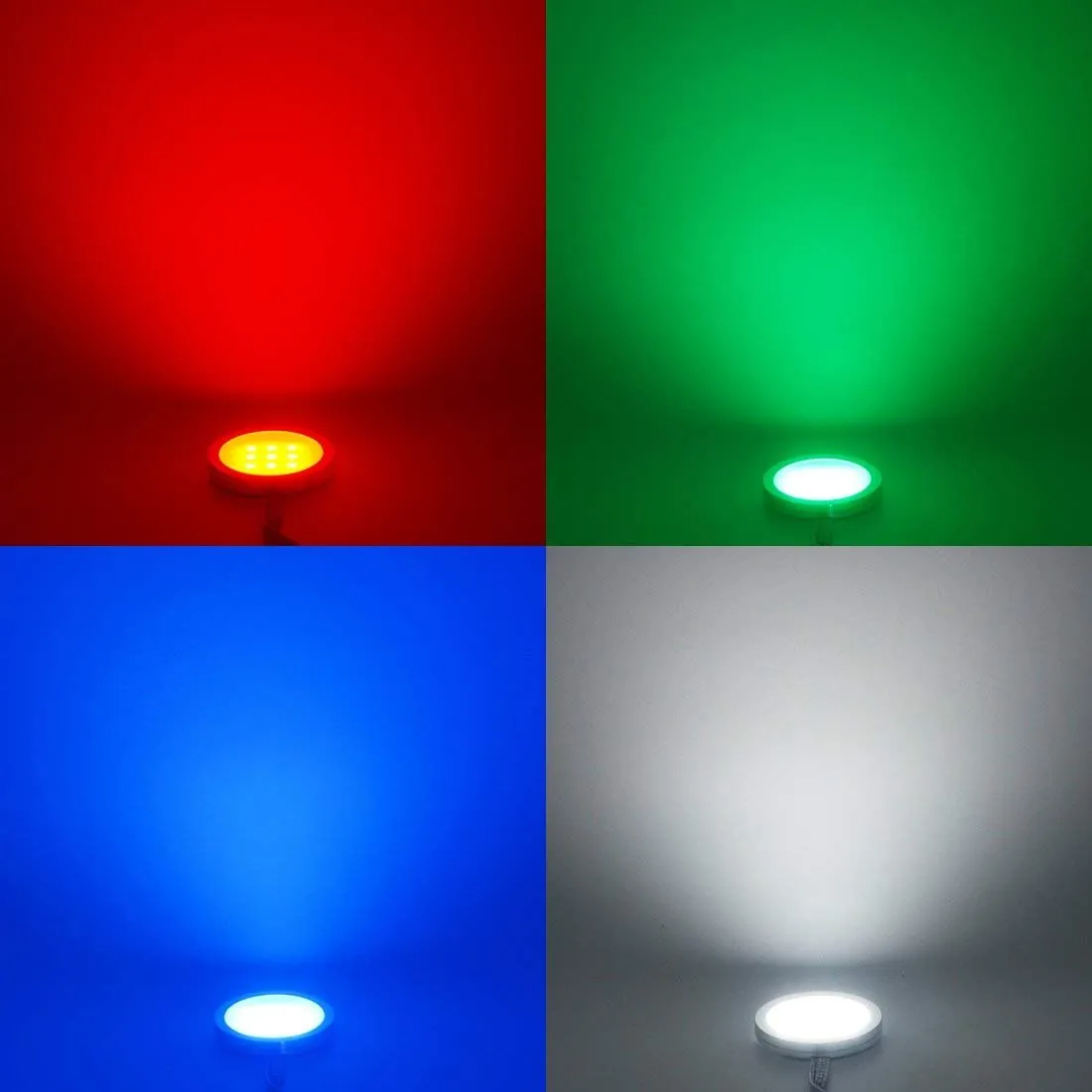 Ultra slim:4 packs of RGB LED under cabinet puck lights for colorful decorative ambiance lighting,120 degree wide beam angle, slim aluminum round shape cabinet lights.