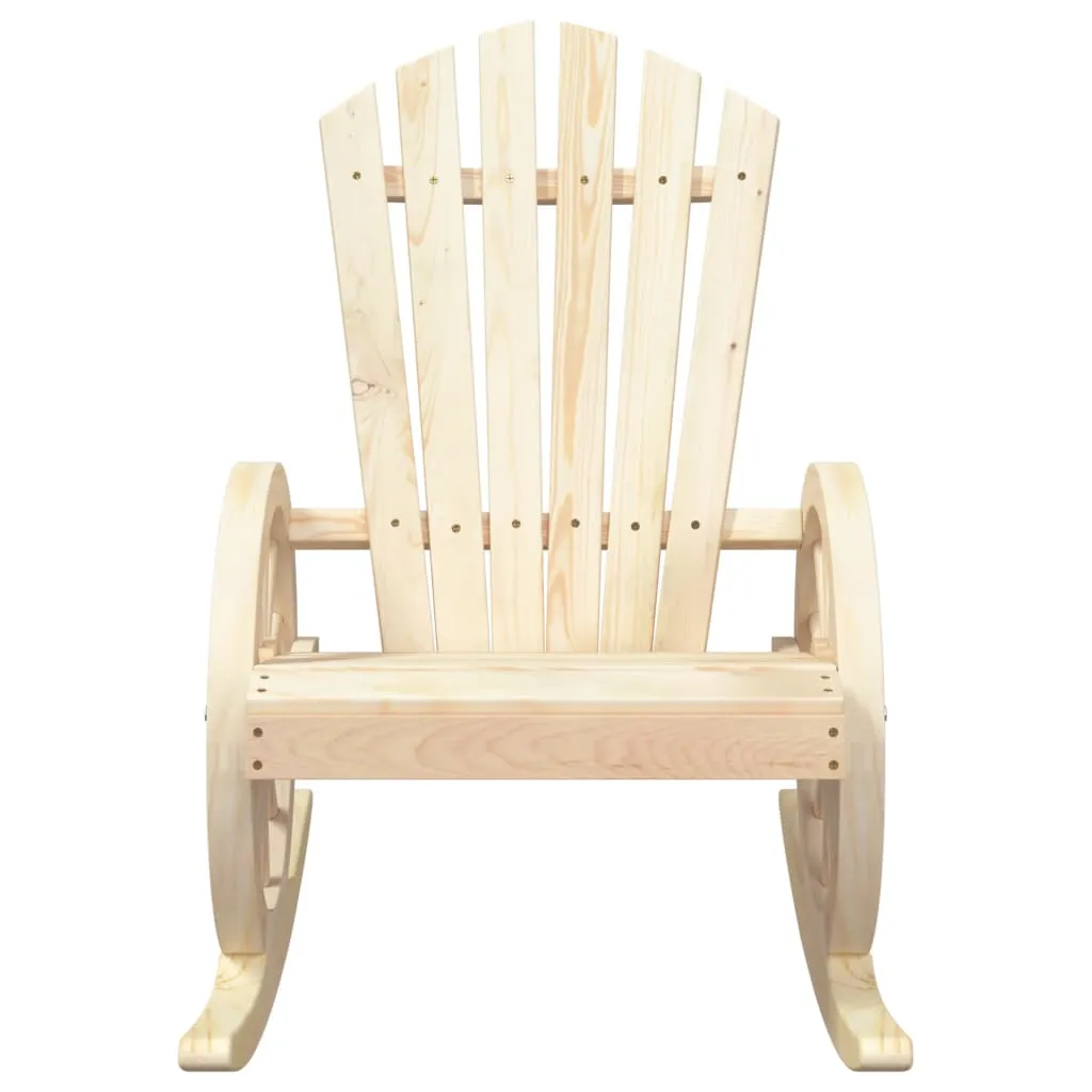 These rocking Adirondack chairs are perfect for those who want to enjoy the outdoors in style and comfort. Solid fir wood: Solid fir wood is a beautiful and durable material that maintains its integrity even when exposed to moisture. It does not dry out or warp, making it a reliable choice.Comfortable seating: The garden lounge chair features an ergonomic seat and angled backrest for optimal seating comfort. Additionally, the wagon-wheel shaped armrests provide comfortable space to rest your arms.Rocking design: Relax by sitting comfortably on this Adirondack rocking chair while enjoying a calming, gentle rocking motion.Wide applications: The outdoor chair is a perfect seating solution in your gardens, backyards, lawns, decks, pool sides, balconies, and other outdoor living spaces. Good to know:To make sure your outdoor furniture stays beautiful, we recommend protecting it with a waterproof cover.