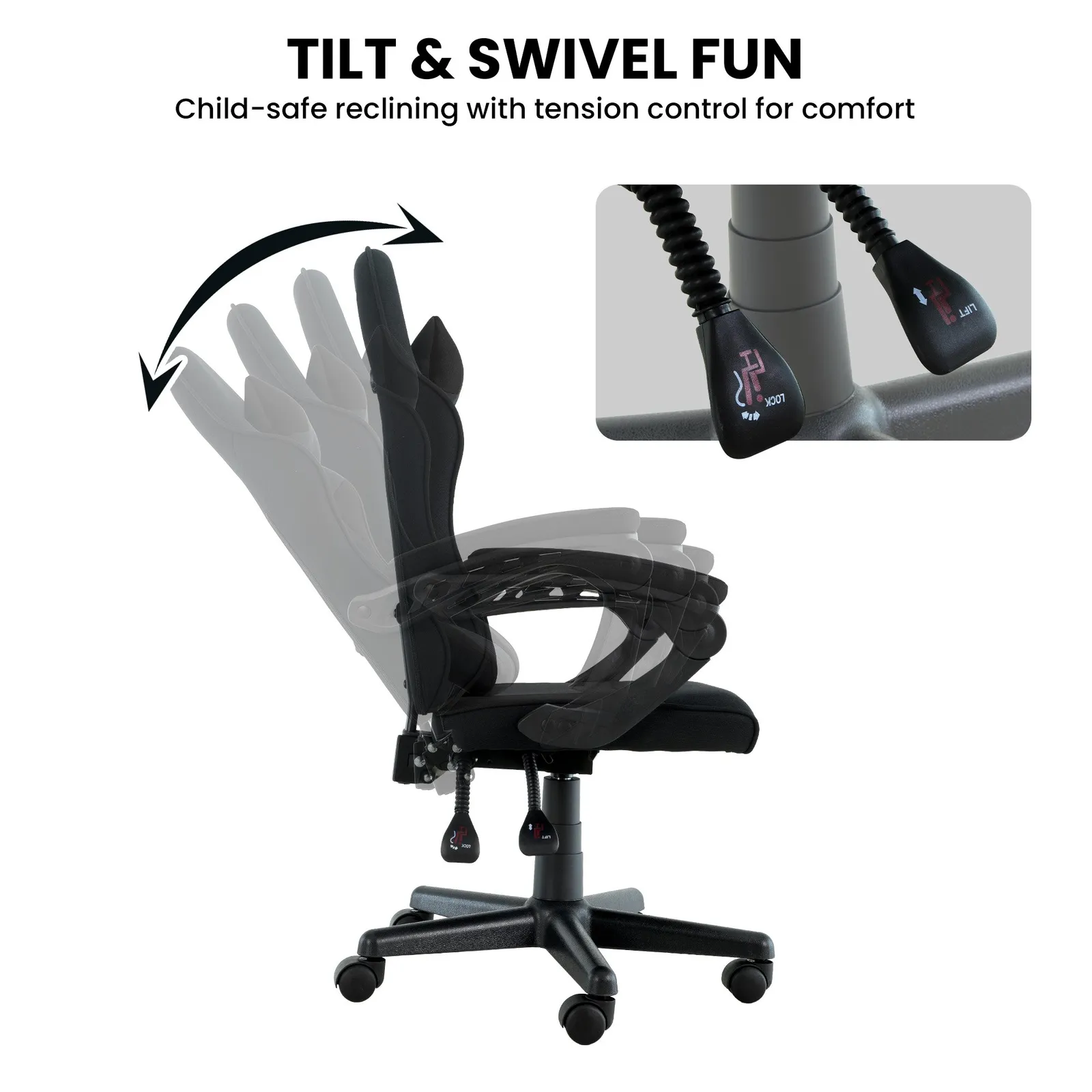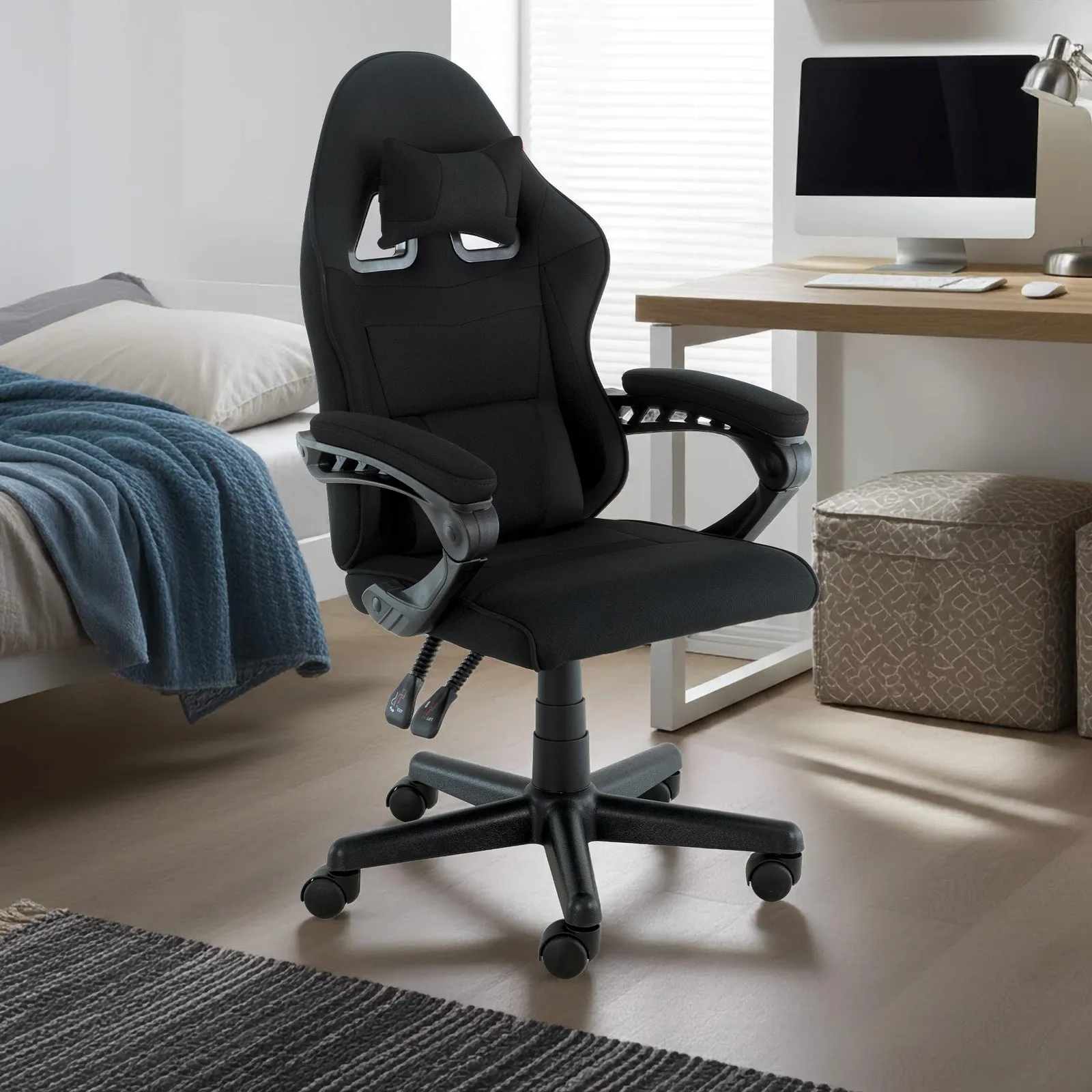 Removable headrest and lumbar cushions add extra comfort for long hours at your desk. Padded armrests and smooth-rolling castors enhance mobility, all supported by a stable nylon base. Whether you are studying or gaming, this chair brings functional design and standout style into any setup.