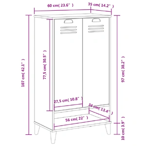 With this shoe cabinet, you can store your shoes effectively and also add practical decor to your home. Durable material: The engineered wood is of exceptional quality with smooth surface and also features strength, stability and resistance to moisture.Ample storage space: The shoe cupboard offers ample storage space to keep your shoes well-organised and offers a clean and clutter-free living area.Sturdy top: The top of the shoe organiser can also be used to display your favourite decorative objects.Practical handle: The shoe stand comes with handles that make it easy to open and close the cabinet while adding extra beauty. Warning:To prevent it from tipping over, this product must be used with the provided wall attachment device.
