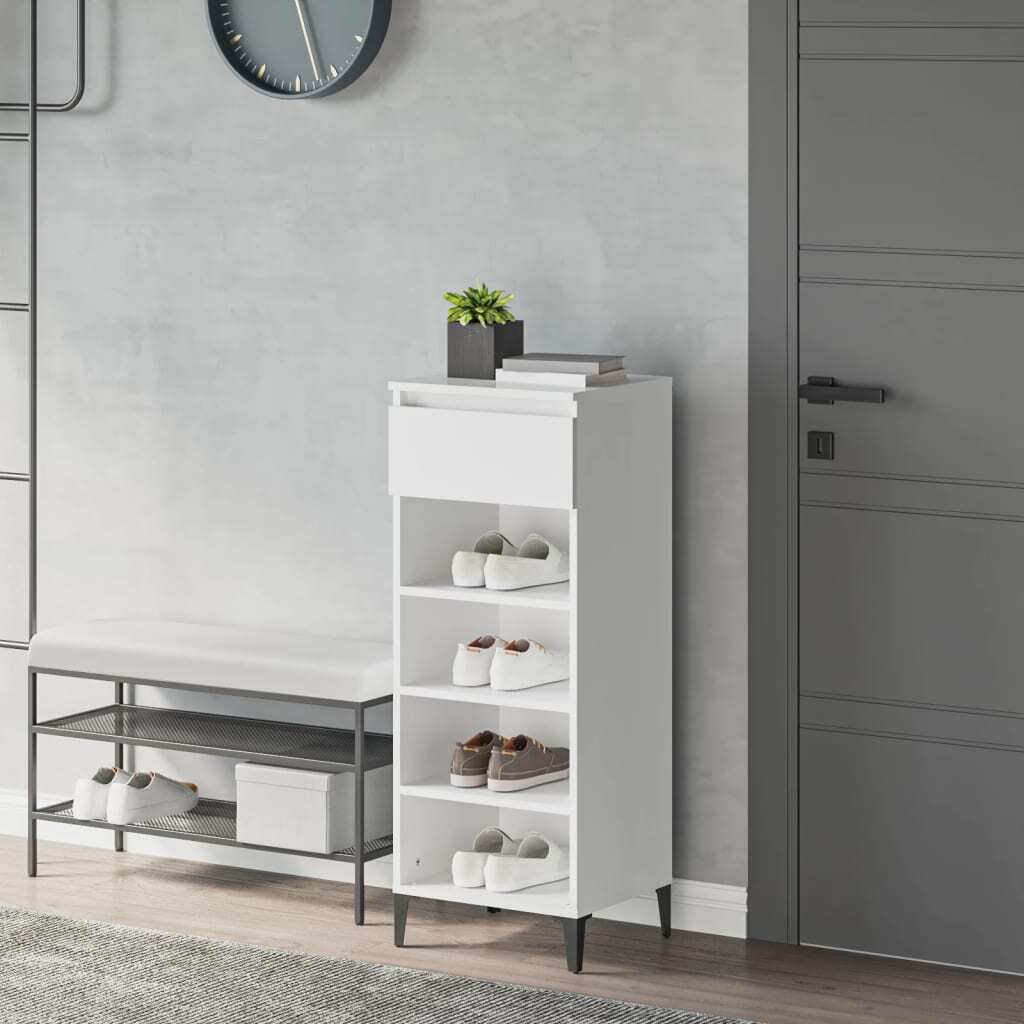 Keep your shoes away from cluttering to create a tidy environment with this elegant shoe rack! Durable material: The engineered wood is of exceptional quality with smooth surface and also features strength, stability and resistance to moisture. Stable frame: The metal feet of this shoe cabinet add an industrial and calm style to your interior while ensuring stability. Ample storage space: This shoe storage features a drawer and 3 shelves, providing ample space to keep your shoes within reach and well organised. Sturdy top: The sturdy top of the shoe storage cabinet is ideal for displaying decorative objects, photo frames, or potted plants. Warning:In order to prevent overturning, this product must be used with the wall attachment device provided. Note:Each product comes with an assembly manual in the box for easy assembly.