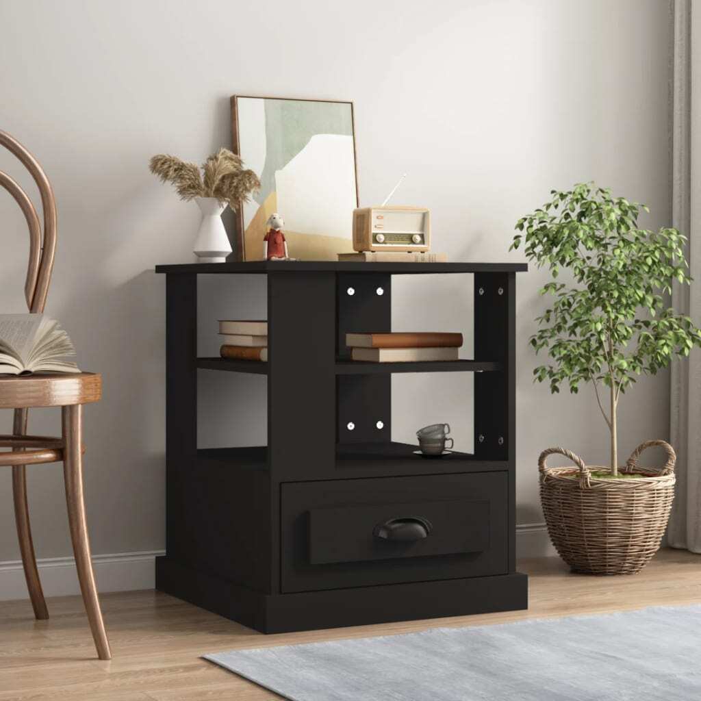This side table exudes a touch of elegant charm that will make a stylish addition to your home decor. Durable material: The engineered wood is of exceptional quality with smooth surface and also features strength, stability and resistance to moisture.Ample storage space: The end table provides ample storage space for keeping your magazines, books, remote controls and other small items well organised and within easy reach.Displaying function: You can also place your favourite photos, decorations or flowers on top of the sofa table to enrich your life. Good to know:To make assembly as easy as possible, each product is delivered with a manual.
