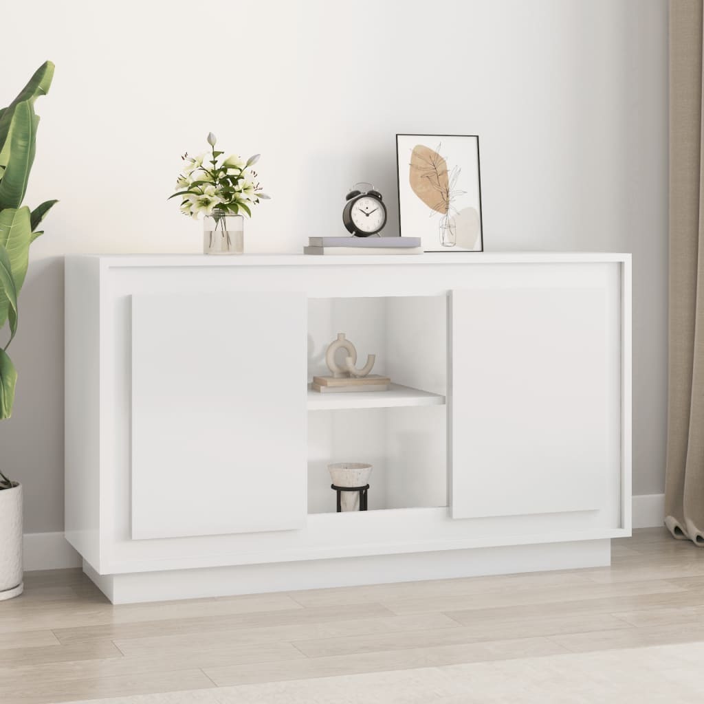 This classic sideboard, featuring a timeless look, is meant to be an excellent addition to your home. Durable material: The engineered wood is of exceptional quality with smooth surface and also features strength, stability and resistance to moisture. Made of engineered wood, the cabinet is easy to clean with a damp cloth.Ample storage space: Equipped with 6 compartments, the sideboard cabinet offers ample storage space for keeping your various daily essentials well organised and within easy reach.Displaying function: The top of the cupboard is great for displaying your decorative items, photo albums or small plants.Practical doors: Keep your essentials free from dust by hiding them behind the doors of this storage cabinet. Good to know:To make assembly as easy as possible, each product is delivered with a manual. Warning:To prevent it being overturned, this product must be used with the provided wall attachment device.