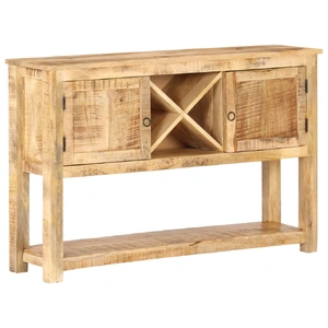 The wooden sideboard is specially designed to add a vintage look to your living room. This side cabinet is made of rough mango wood, a tropical hardwood with the strength to bear the weight. It also stands the wear and tear of time, making it stable and durable. The craftsmanship and the beautiful wood grains make every piece of furniture unique and slightly different from the next. This cupboard also features 2 doors, a shelf and a middle compartment divided into four small compartments by two cross panel, which provides ample storage space for storing your essential items organised and within reach. Important note: Colours and grains vary from piece to piece, making each piece unique. The delivery is random as well.