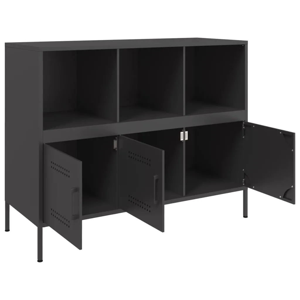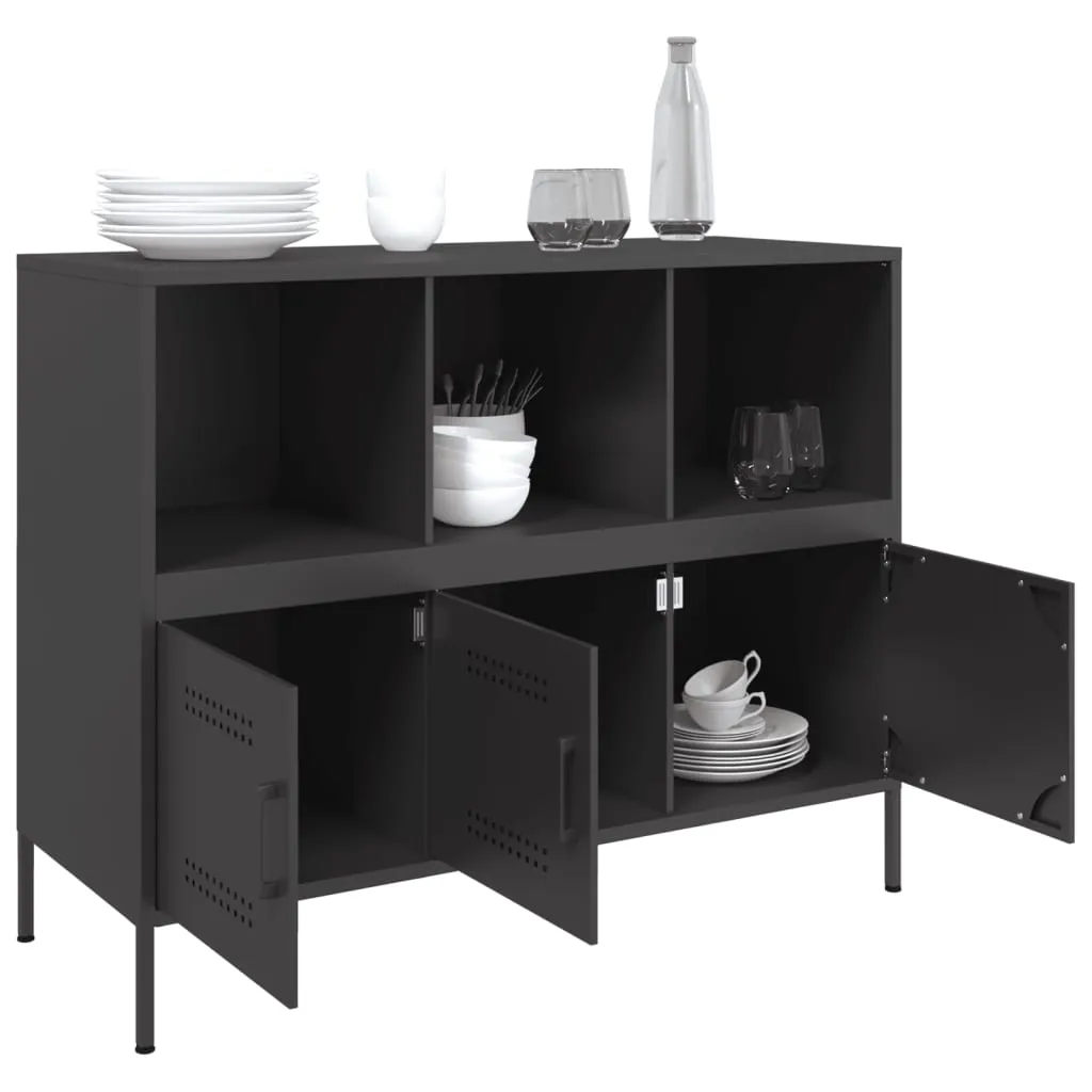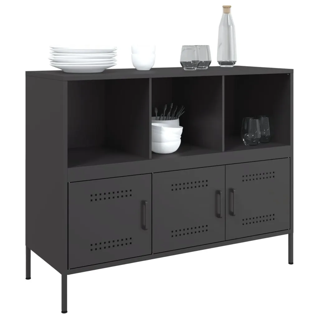 This sturdy sideboard with industrial style makes a timeless and modern addition to your living room or bedroom. Stable material: The sideboard cabinet's frame is made of cold-rolled steel. Cold-rolled steel is a kind of low-carbon steel produced by a "cold rolling" method and processed at near normal room temperatures. Cold-rolled steel has a smoother surface, greater strength, and higher precision.Ample storage space: This buffet provides ample storage space for keeping your magazines, books, DVDs, remote control and other small items well-organised and within reach.Adjustable screw feet: This storage cabinet is equipped with four adjustable screw feet to compensate for uneven floors, ensuring stability and balance.Practical door: The door helps maintain a clean and organised space by concealing small essentials and clutter behind them.Easy to clean: The metal cabinet is easy to clean with a damp cloth and requires less maintenance. Warning:To prevent it from tipping over, this product must be used with the provided wall attachment device.