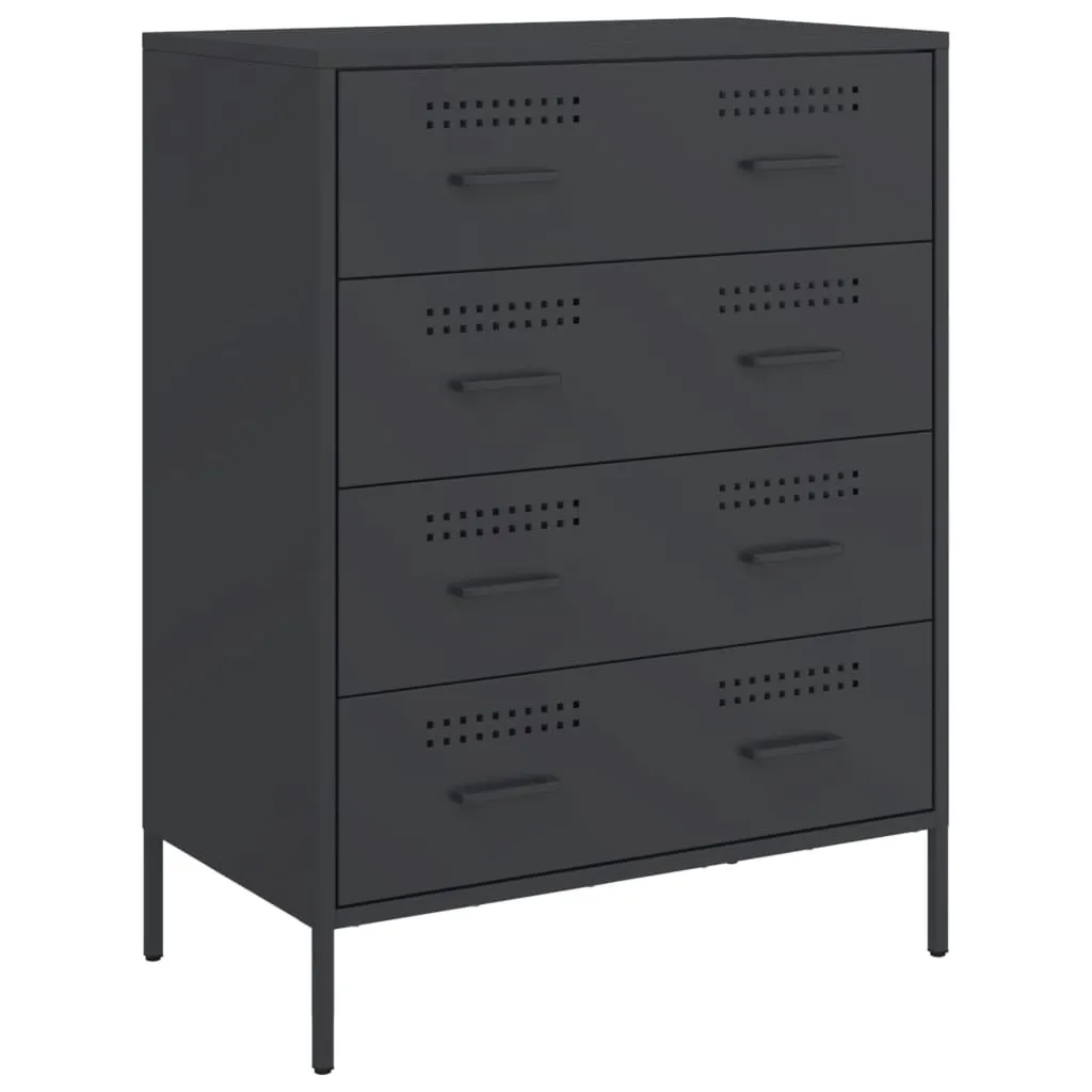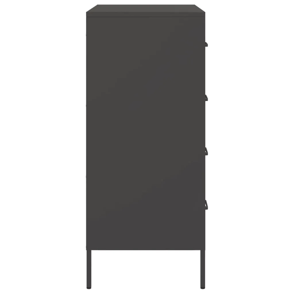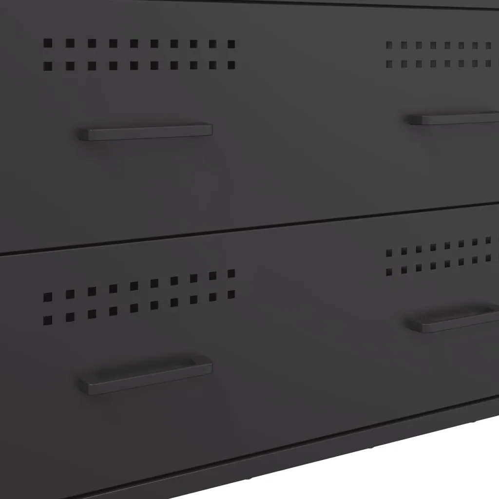 This sturdy sideboard with an industrial style makes a timeless addition to your living room or bedroom. Robust and stable frame: Steel is strong, stable, and durable, making it an ideal choice for a wide range of applications, from furniture manufacturing to construction.Ample storage space: This sideboard cabinet has 4 drawers, which provides ample storage space for keeping your various daily essentials well-organised and within easy reach. Easy to clean: The cupboard is easy to clean with a damp cloth and requires less maintenance.Warning:To prevent it from tipping over, this product must be used with the provided wall attachment device.