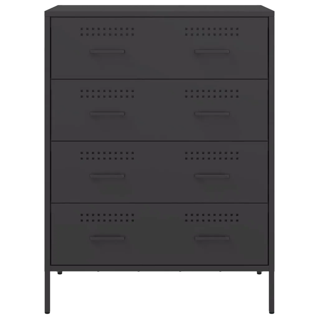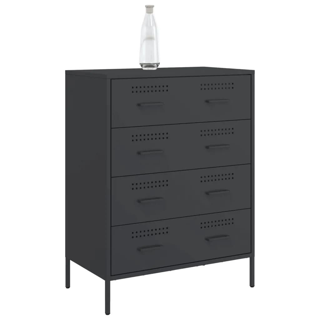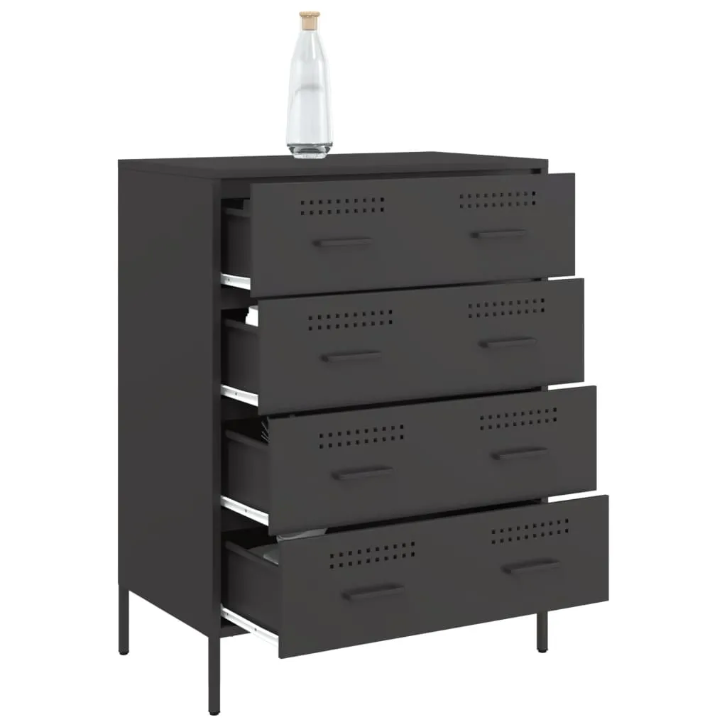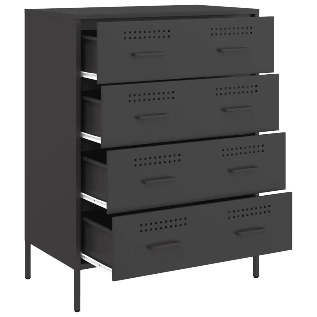 This sturdy sideboard with an industrial style makes a timeless addition to your living room or bedroom. Robust and stable frame: Steel is strong, stable, and durable, making it an ideal choice for a wide range of applications, from furniture manufacturing to construction.Ample storage space: This sideboard cabinet has 4 drawers, which provides ample storage space for keeping your various daily essentials well-organised and within easy reach. Easy to clean: The cupboard is easy to clean with a damp cloth and requires less maintenance.Warning:To prevent it from tipping over, this product must be used with the provided wall attachment device.