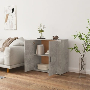 This practical sideboard is meant to satisfy your various requirements and is an ideal addition to your room. Durable material: This cabinet is made of engineered wood. The engineered wood is of exceptional quality with smooth surface and also features strength, stability and resistance to moisture.Sufficient storage space: Equipped with compartments and doors, the sideboard cabinet offers ample storage space for keeping various daily essentials well organised and within easy reach.Sturdy top: You can also place your favourite photos, decorations or flowers on top of this cupboard to enrich your life.Practical design: This storage cabinet features doors, which can protect your things from dust and dirt. Warning:In order to prevent overturning, this product must be used with the wall attachment device provided. Note:Each product comes with an assembly manual in the box for easy assembly.