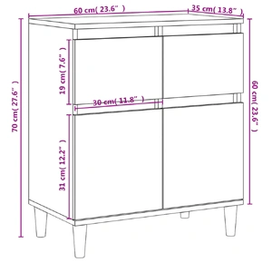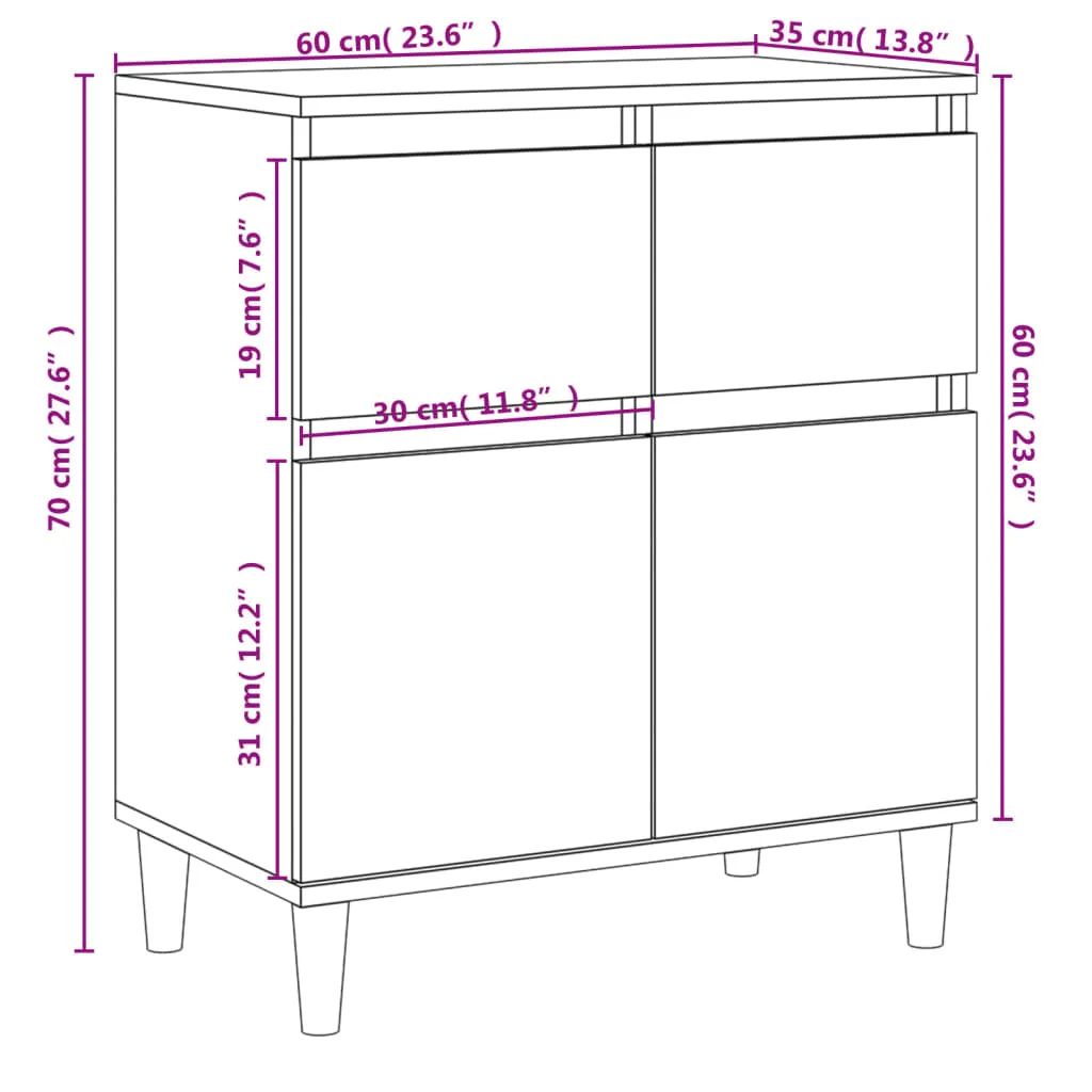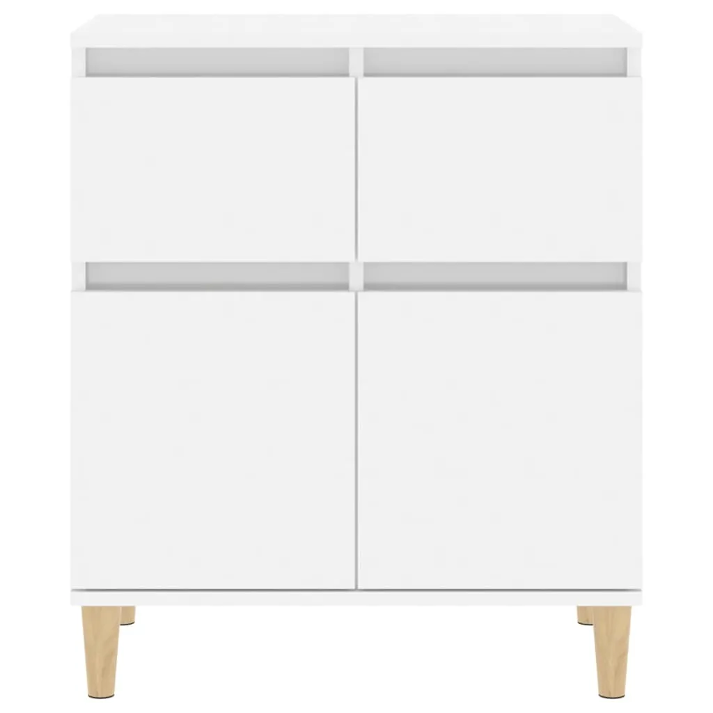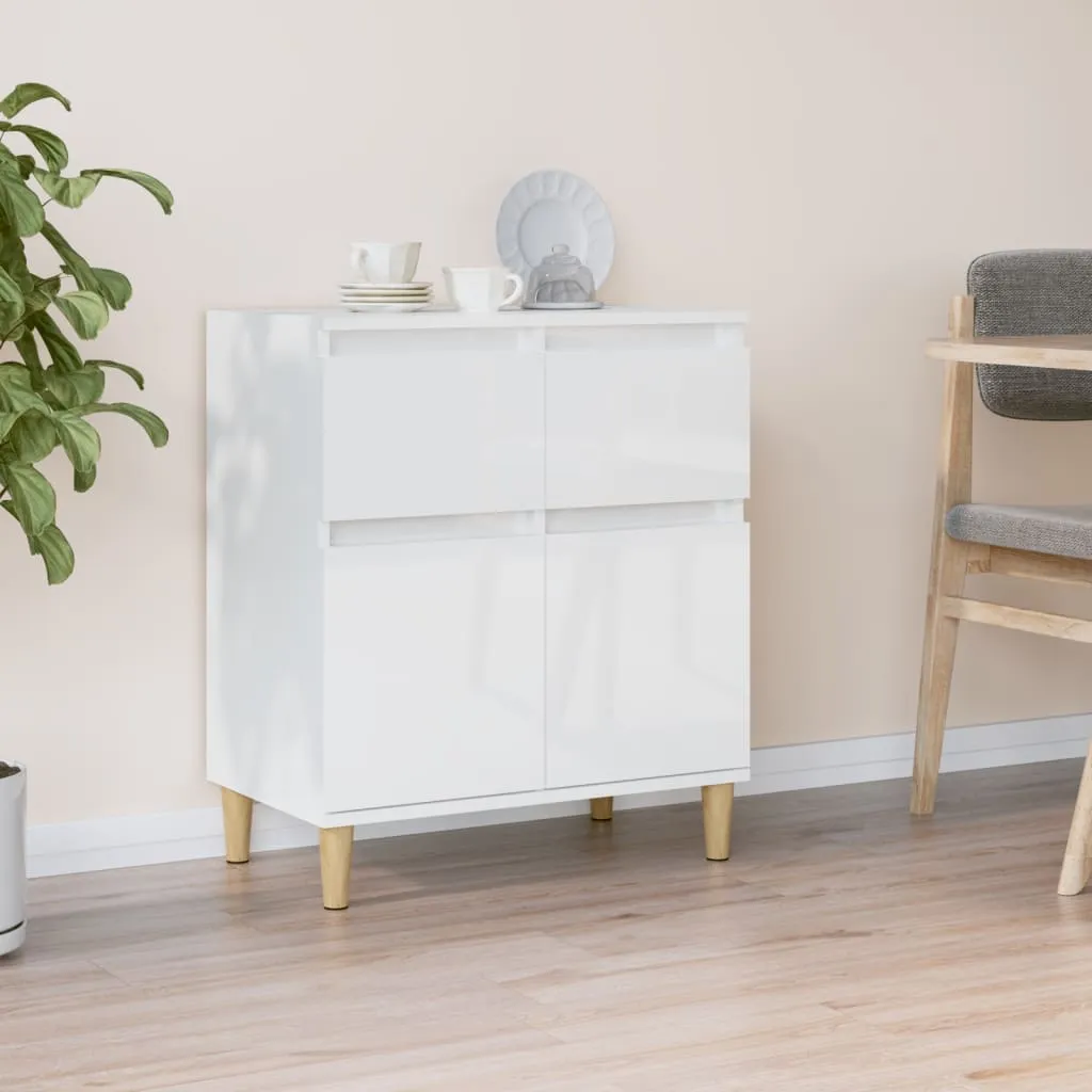 This stylish sideboard is a perfect choice for your room with its trendy and practical design. Durable material: The engineered wood is of exceptional quality with a smooth surface and also features strength, stability, and resistance to moisture.Wooden feet: The solid eucalyptus wood feet give the storage cabinet a natural and pleasant look while ensuring stability.Ample storage space: This cabinet has 2 drawers and 2 compartments with doors to keep your essentials well organised and within reach.Wide applications: You can use this side cabinet as a bathroom cabinet or kitchen cupboard, or just as an elegant storage cabinet in bedrooms, powder rooms, entryways, corridors and offices, dining rooms, and other living areas. Good to know:To make assembly as easy as possible, each product is delivered with a manual. Warning:To prevent it being overturned, this product must be used with the provided wall attachment device.