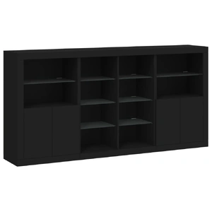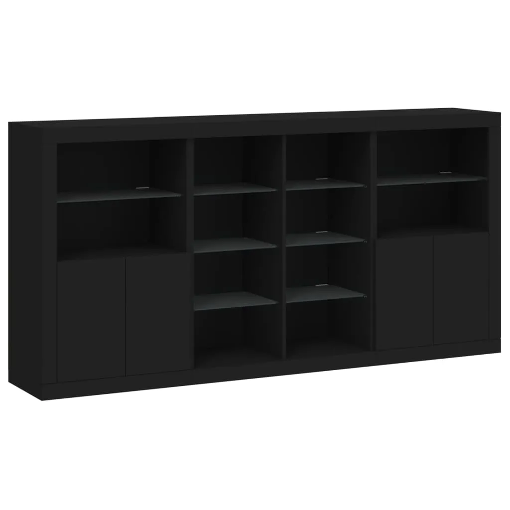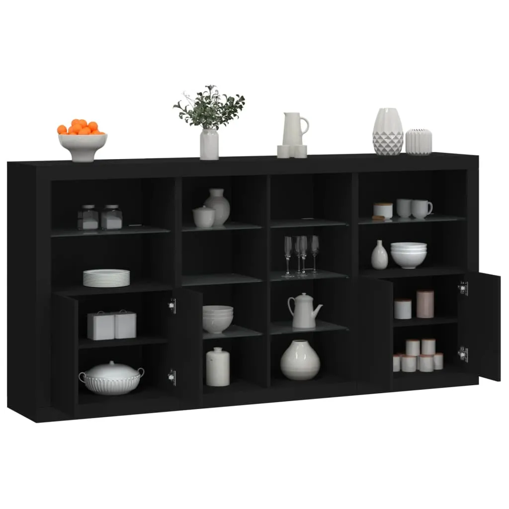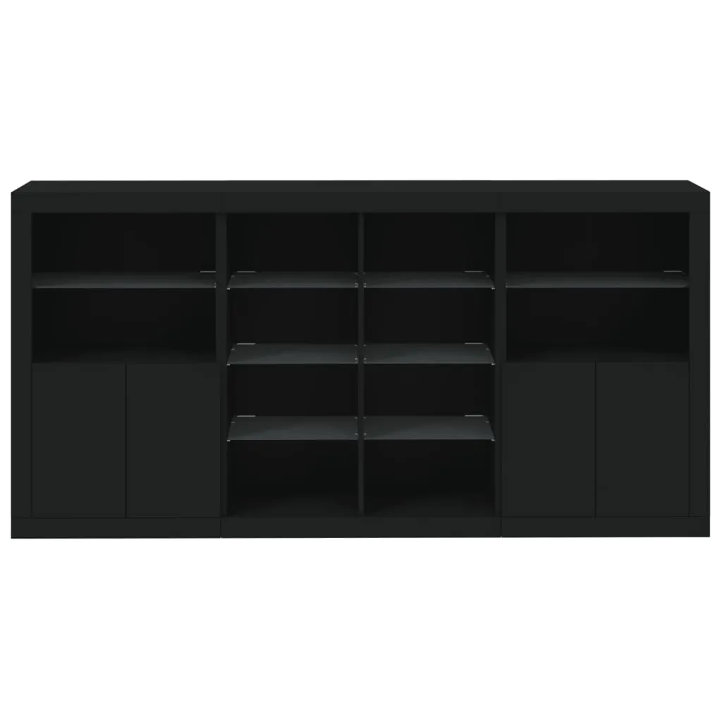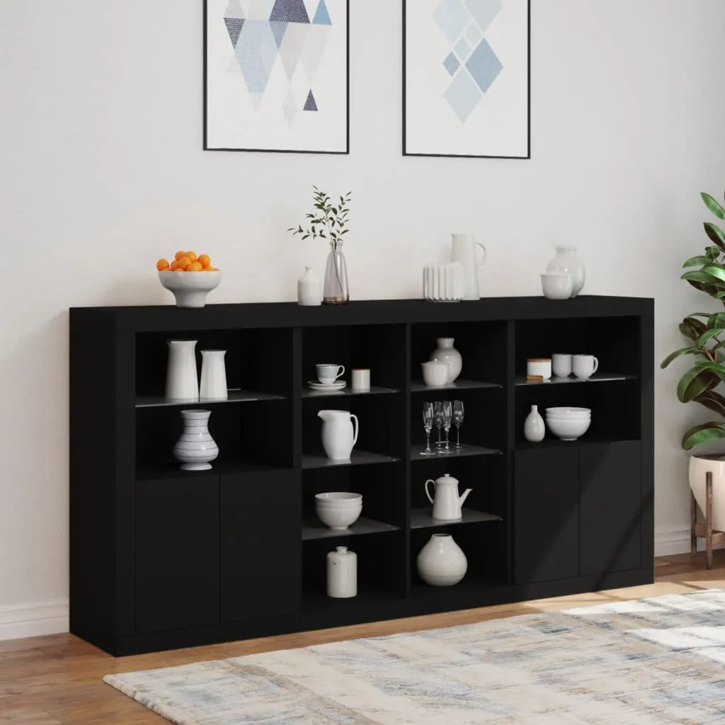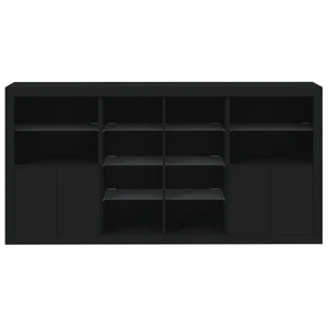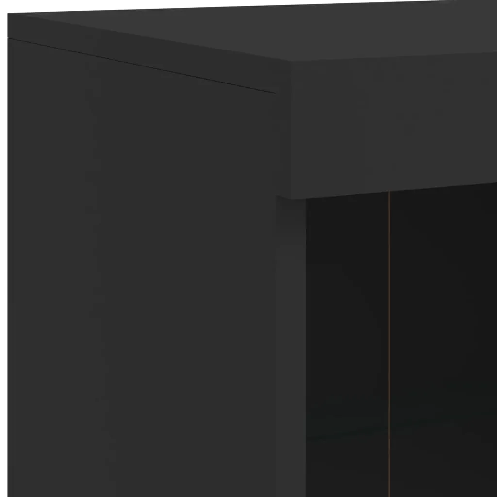 Decorate your room with this modern sideboard with LED lights, it easily blends with furniture in any style at your house. Durable material: The engineered wood is of exceptional quality with smooth surface and also features strength, stability and resistance to moisture.RGB LED lights: The buffet is equipped with vibrant RGB LED lights. With various customisable menus, you can effortlessly change the colour of the lights and even set them to adjust automatically. These LED lights not only enhance the contemporary look of the sideboard cabinet but also add to its trendy appeal.Ample storage space: The storage cabinet offers plenty of space to keep your everyday items neatly arranged and easily accessible.Displaying function: The sturdy top of the hallway cabinet is ideal for displaying decorative objects, photo frames, or potted plants.Practical doors: Keep your essentials free from dust by hiding them behind the doors of the side cabinet. Good to know:The product has a USB connector that requires a certified 5V USB power source (not included). Warning:To prevent it being overturned, this product must be used with the provided wall attachment device.