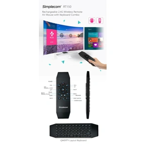 RT150 is a universal 2.4G wireless remote control with the combination of air mouse, keyboard, and motion sensing support. It converts your space movement in the air into an accurate movement on the screen, allows mouse to be controlled accurately. Its a unique and capable tool to operate PC, Android TV Box, and more. Built-in rechargeable Lithium battery with auto sleep function, will last for several weeks on a single charge.