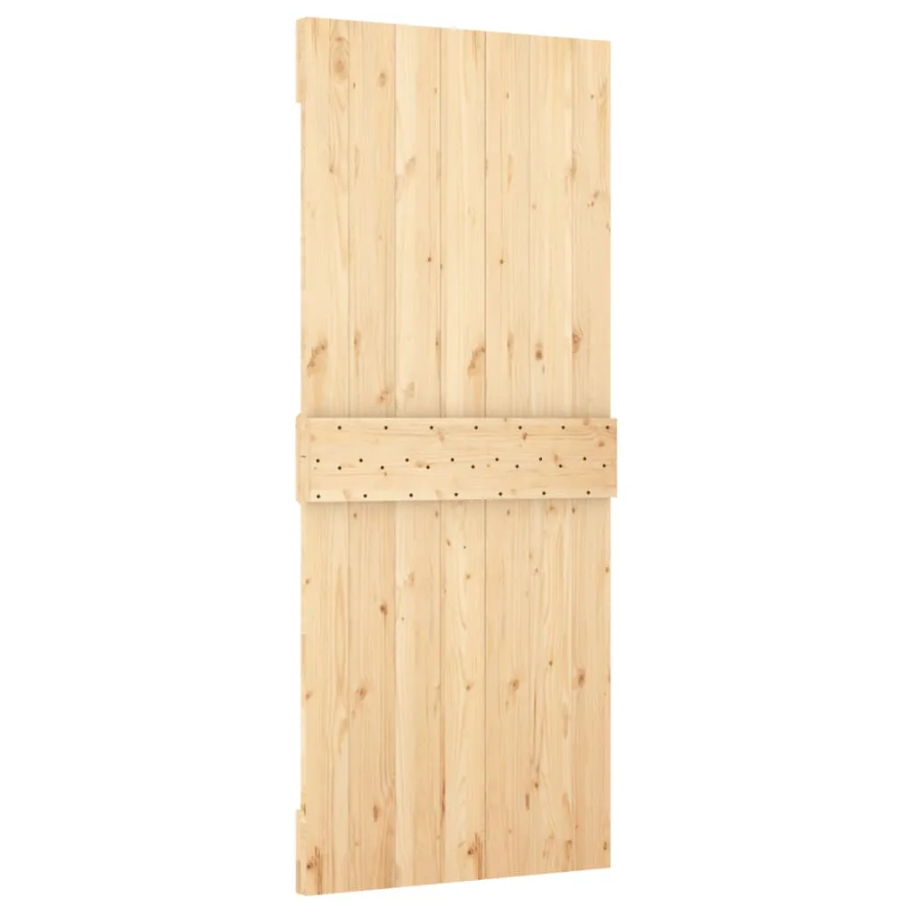 This solid pine wood sliding door is designed to enrich the entrance area of your house and also ensure better security for your home. Solid pine wood: The interior door is made of solid pine wood. Solid pine wood is a beautiful natural material. Pine wood has a straight grain, and the knots give the material its signature, rustic look.Sturdy sliding rails: Steel is an exceptionally hard and strong material. It offers sturdiness and stability. The powder coating on steel creates a protective layer against wear and tear. Made of powder-coated steel, the sliding rails are sturdy, durable and heavy-duty.Quiet and smooth sliding: Thanks to the internal bearings, your internal sliding door will slide smoothly and quietly. Doorstops are also included to prevent the derailing of the rollers, while the rubber gaskets will buffer the bump from rollers and reduce the noise.Space-saving design: This wooden sliding door saves space and looks more spacious. It is the first choice for a simple and atmospheric modern home design.Wide applications: The sliding barn door can be installed on both wooden walls and concrete walls. It's great for use in the bedroom, kitchen, barn, garage, etc.