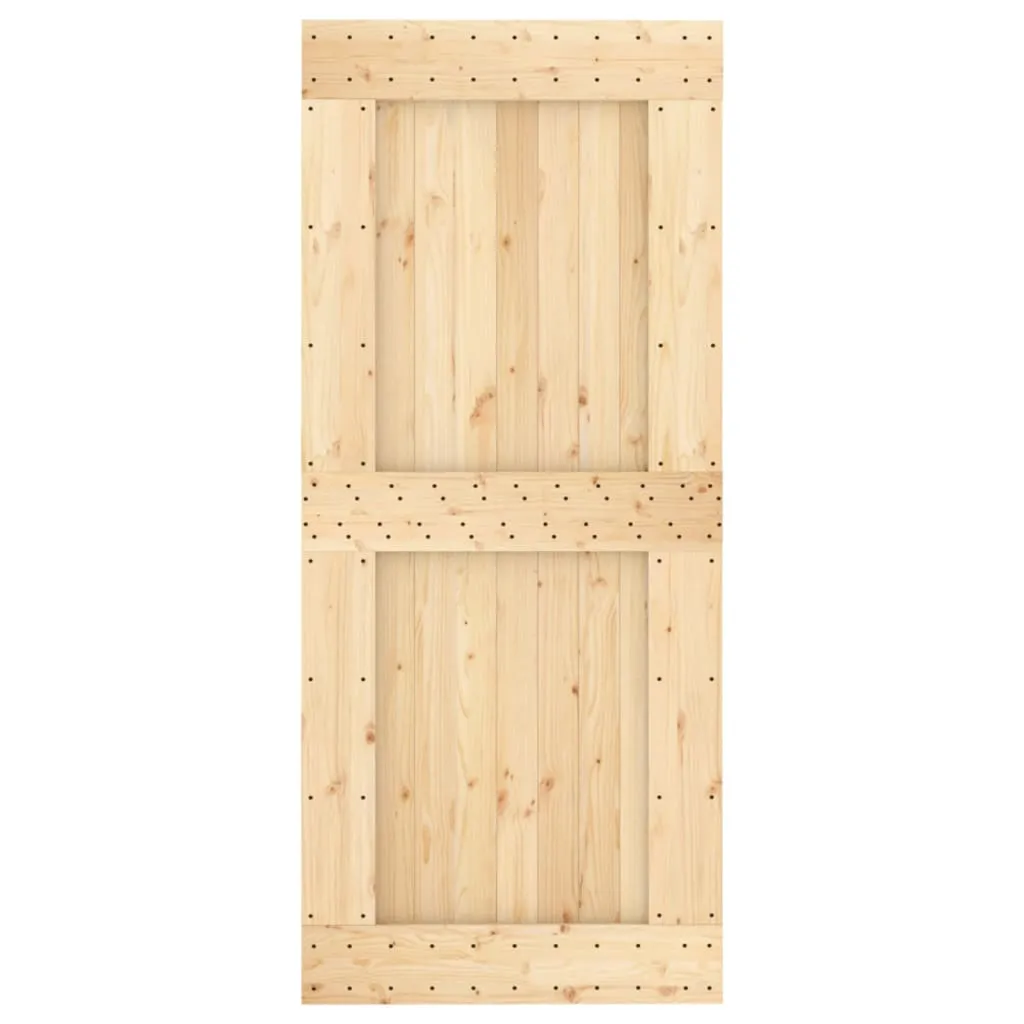 This solid pine wood sliding door is designed to enrich the entrance area of your house and also ensure better security for your home. Solid pine wood: The interior door is made of solid pine wood. Solid pine wood is a beautiful natural material. Pine wood has a straight grain, and the knots give the material its signature, rustic look.Sturdy sliding rails: Steel is an exceptionally hard and strong material. It offers sturdiness and stability. The powder coating on steel creates a protective layer against wear and tear. Made of powder-coated steel, the sliding rails are sturdy, durable and heavy-duty.Quiet and smooth sliding: Thanks to the internal bearings, your internal sliding door will slide smoothly and quietly. Doorstops are also included to prevent the derailing of the rollers, while the rubber gaskets will buffer the bump from rollers and reduce the noise.Space-saving design: This wooden sliding door saves space and looks more spacious. It is the first choice for a simple and atmospheric modern home design.Wide applications: The sliding barn door can be installed on both wooden walls and concrete walls. It's great for use in the bedroom, kitchen, barn, garage, etc.
