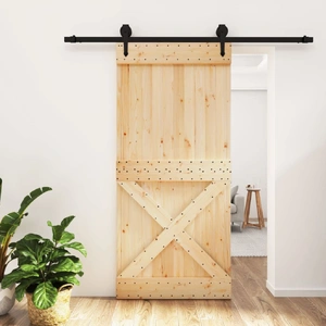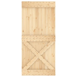 This solid pine wood sliding door is designed to enrich the entrance area of your house and also ensure better security for your home. Solid pine wood: The interior door is made of solid pine wood. Solid pine wood is a beautiful natural material. Pine wood has a straight grain, and the knots give the material its signature, rustic look.Sturdy sliding rails: Steel is an exceptionally hard and strong material. It offers sturdiness and stability. The powder coating on steel creates a protective layer against wear and tear. Made of powder-coated steel, the sliding rails are sturdy, durable and heavy-duty.Quiet and smooth sliding: Thanks to the internal bearings, your internal sliding door will slide smoothly and quietly. Doorstops are also included to prevent the derailing of the rollers, while the rubber gaskets will buffer the bump from rollers and reduce the noise.Space-saving design: This wooden sliding door saves space and looks more spacious. It is the first choice for a simple and atmospheric modern home design.Wide applications: The sliding barn door can be installed on both wooden walls and concrete walls. It's great for use in the bedroom, kitchen, barn, garage, etc.