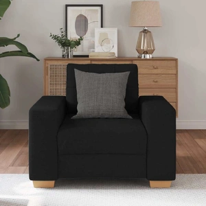 Experience exceptional comfort and style with the sofa chair, perfect for chatting, reading, watching TV, or simply unwinding. Soft and durable material: Polyester fabric offers a combination of softness, breathability, and durability, ensuring you experience ultimate comfort and cosiness.Comfortable seating experience: Designed for relaxation, this relax sofa comes with thickly padded foam seats and fibre-filled cushions for excellent support, making it the ideal place to relax in comfort.Sturdy and stable frame: The plywood and metal frame and supportive legs of the sofa ensure sturdiness, allowing you to enjoy a comfortable seating experience without worrying about stability.Versatile use: Whether placed in the living room, bedroom, study, or reception area, the modern sofa effortlessly complements any setting. From spacious rooms to intimate nooks, its flexible design ensures it enhances any space without limitation.Eye-catching design: The armchair showcases the combination of fabric and plywood armrests, enhancing the fusion of its different stylistic elements and adapting it to both modern and traditional interiors.
