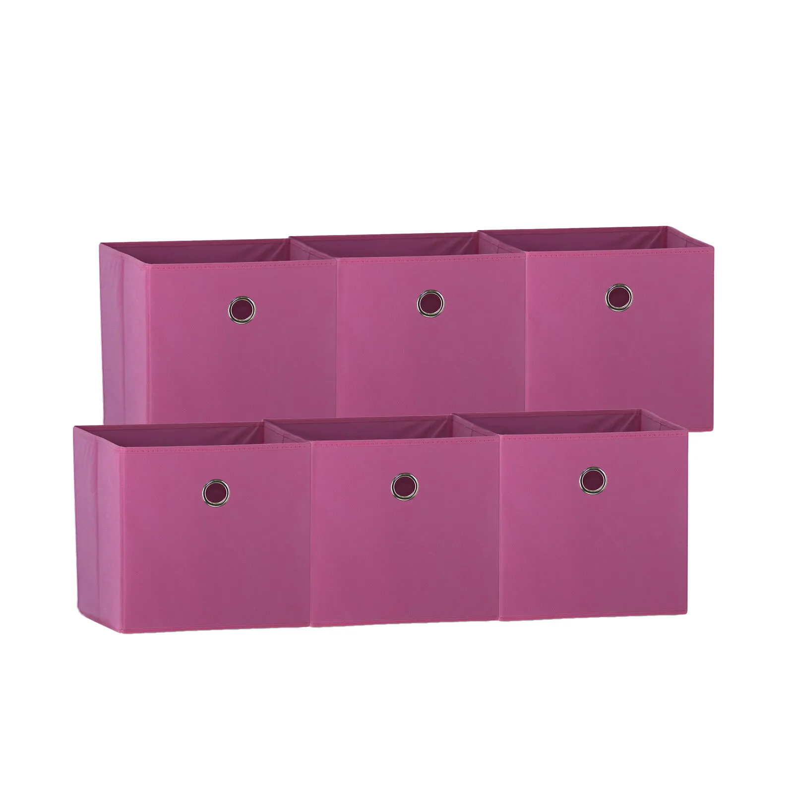 SORTI 33x33x27 CM Dark Pink 6-Pack Foldable Storage Cubes - Fabric Bookcase Organizers for Toys and More