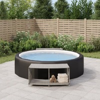 Enhance the spa experience for you and your guests with this stylish spa surround. Durable material: PE rattan, also known as poly rattan, is weather resistant and easy to clean. It remains beautiful on the outside for a long period of time. It's more economical than other materials, while offering great quality, convenience and an aesthetic look.Stable frame: The bench and storage shelf's frames are made of powder-coated steel. Steel is an exceptionally hard and strong material. It offers sturdiness and stability. The powder coating on steel creates a protective layer against wear and tear.Solid acacia wood: The spa step is made of solid acacia wood. Solid acacia wood is a beautiful natural material. Acacia wood is a tropical hardwood, which is dense, sturdy, and durable.Comfortable experience: The hot tub surround includes a spa bench with cushions for maximum relaxing comfort.Storage space: Featuring a built-in storage area, the hot tub enclosure keeps all the essentials organised and within easy reach.