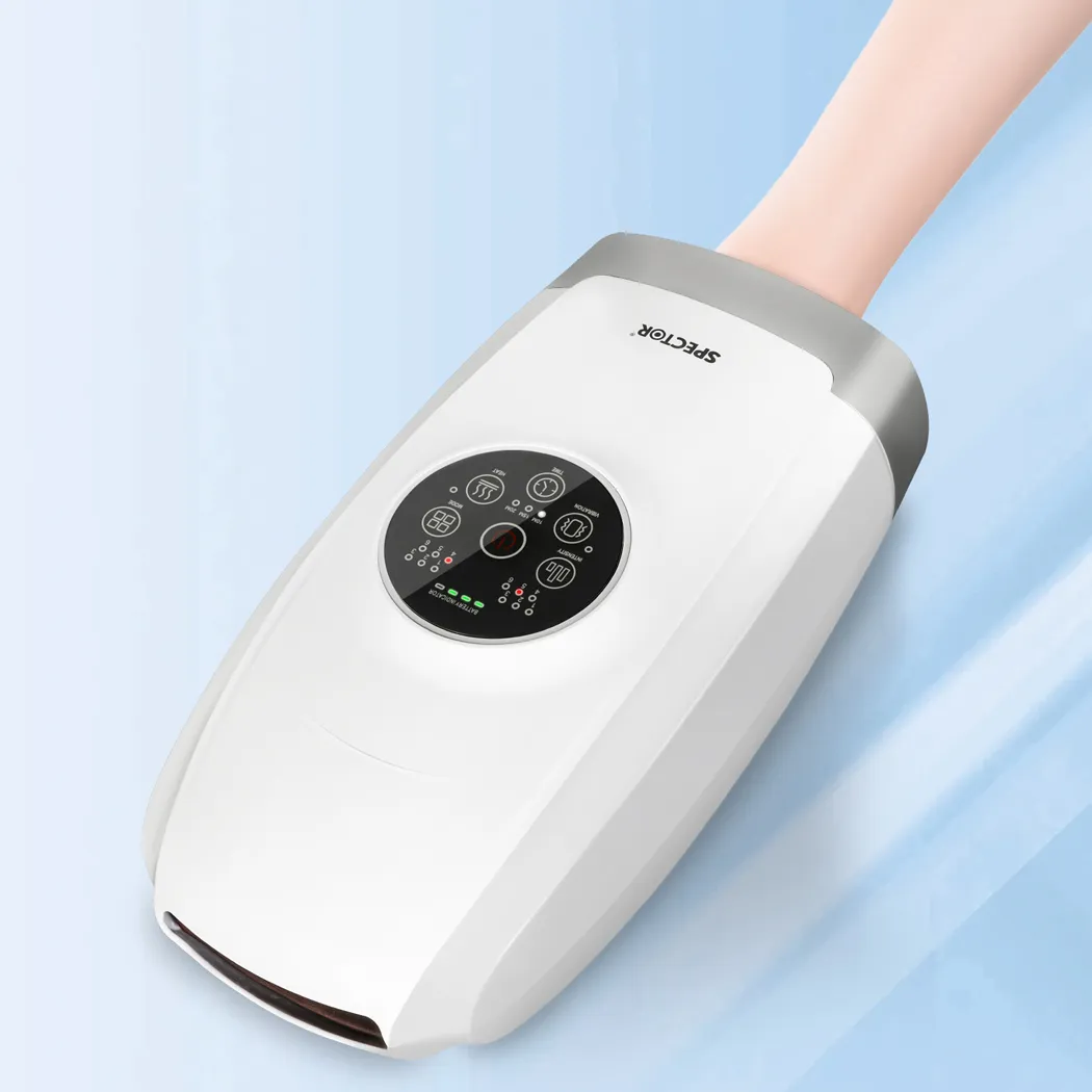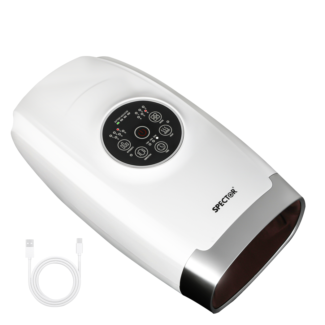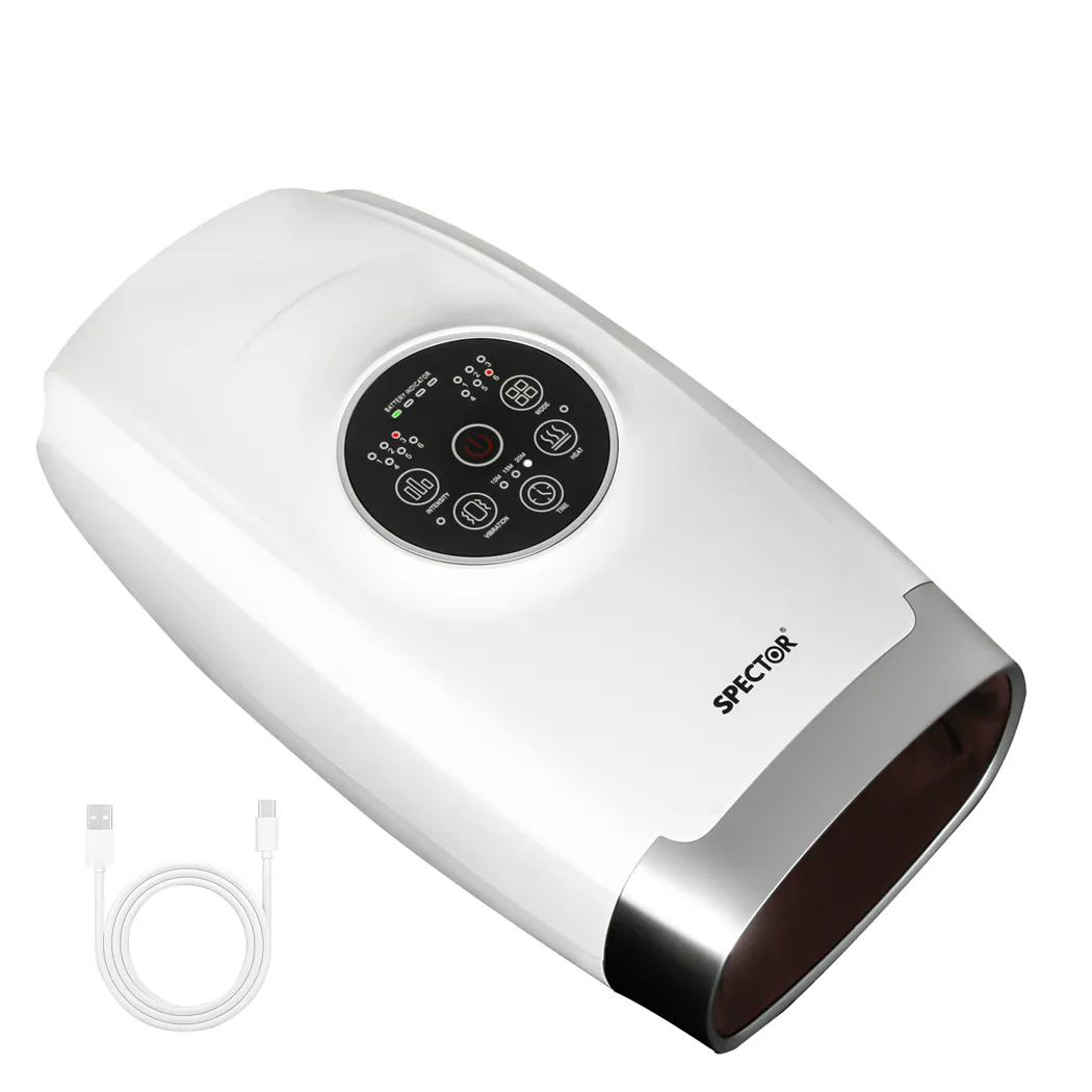 Relax and unwind with this smart hand massager, designed to provide a custom massage experience with 6 modes, 2 vibration settings, and 6 intensity levels. It uses acupressure therapy to target key points on your wrist, palm, and fingers, helping to improve circulation and relieve pain from conditions like arthritis. The built-in heating function (up to 43°C) adds soothing warmth, while the 3 timer settings (10, 15, or 20 minutes) let you personalise your session. With a long-lasting 2200mAh battery offering over 4.5 hours of use, this massager is USB rechargeable. Ideal as a thoughtful gift for family, friends, or the elderly, it's perfect for occasions like Mother's Day, Father's Day, or birthdays!