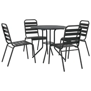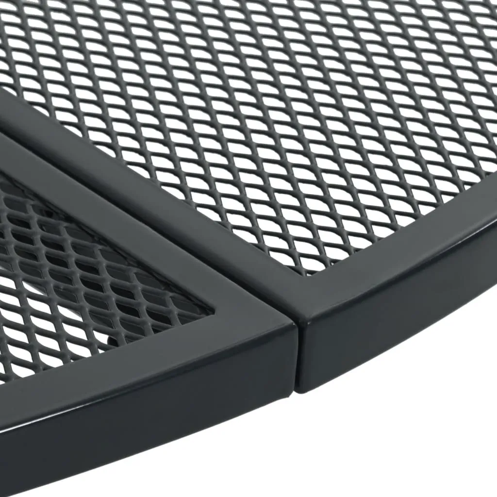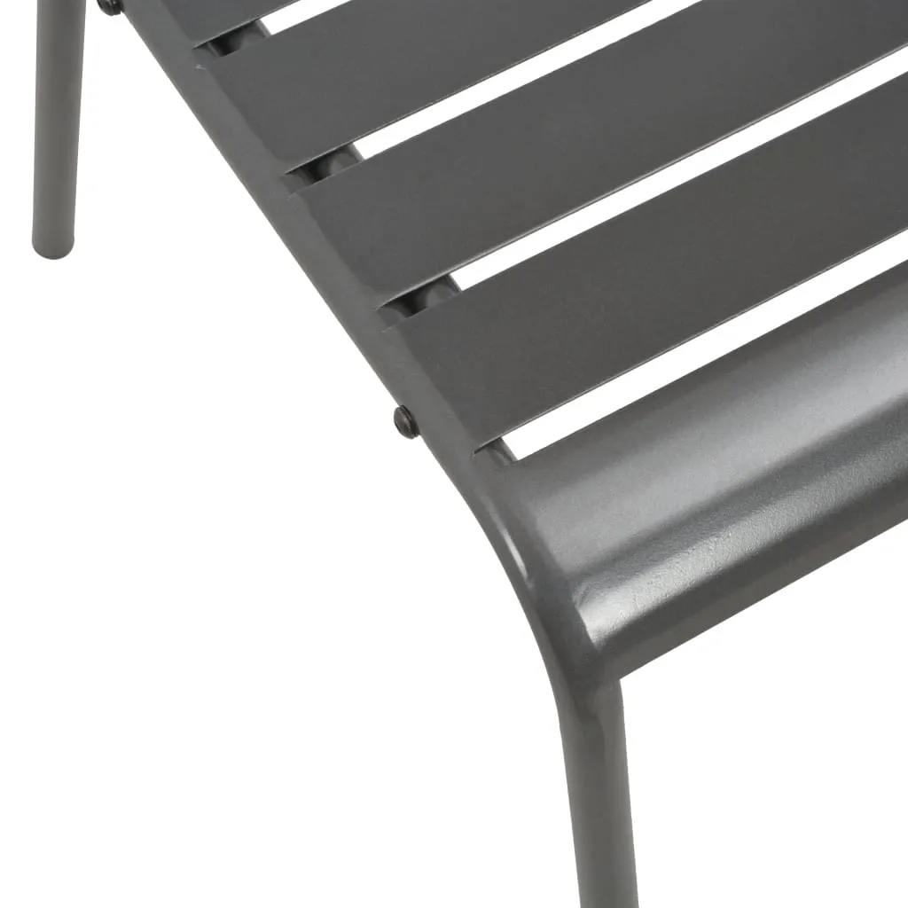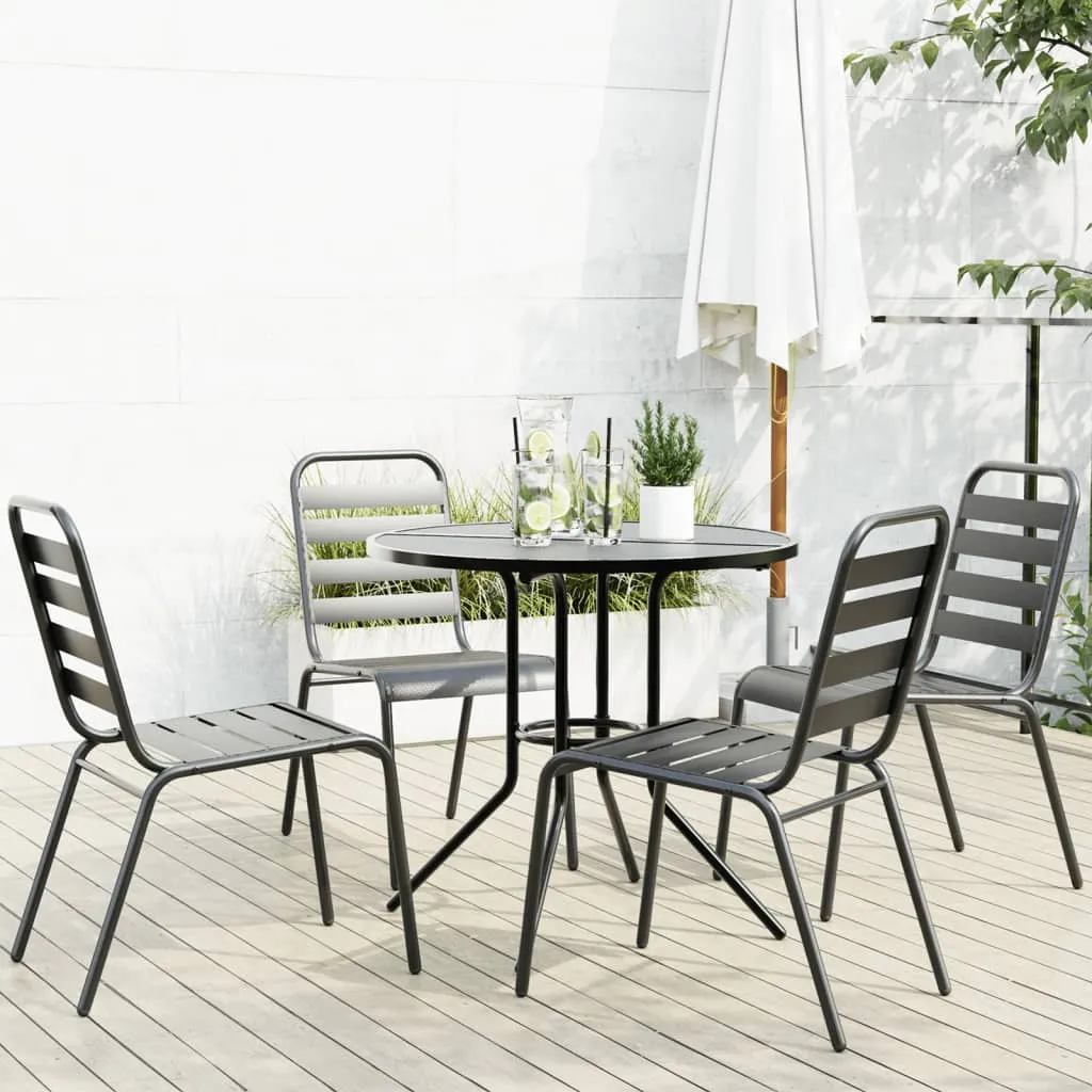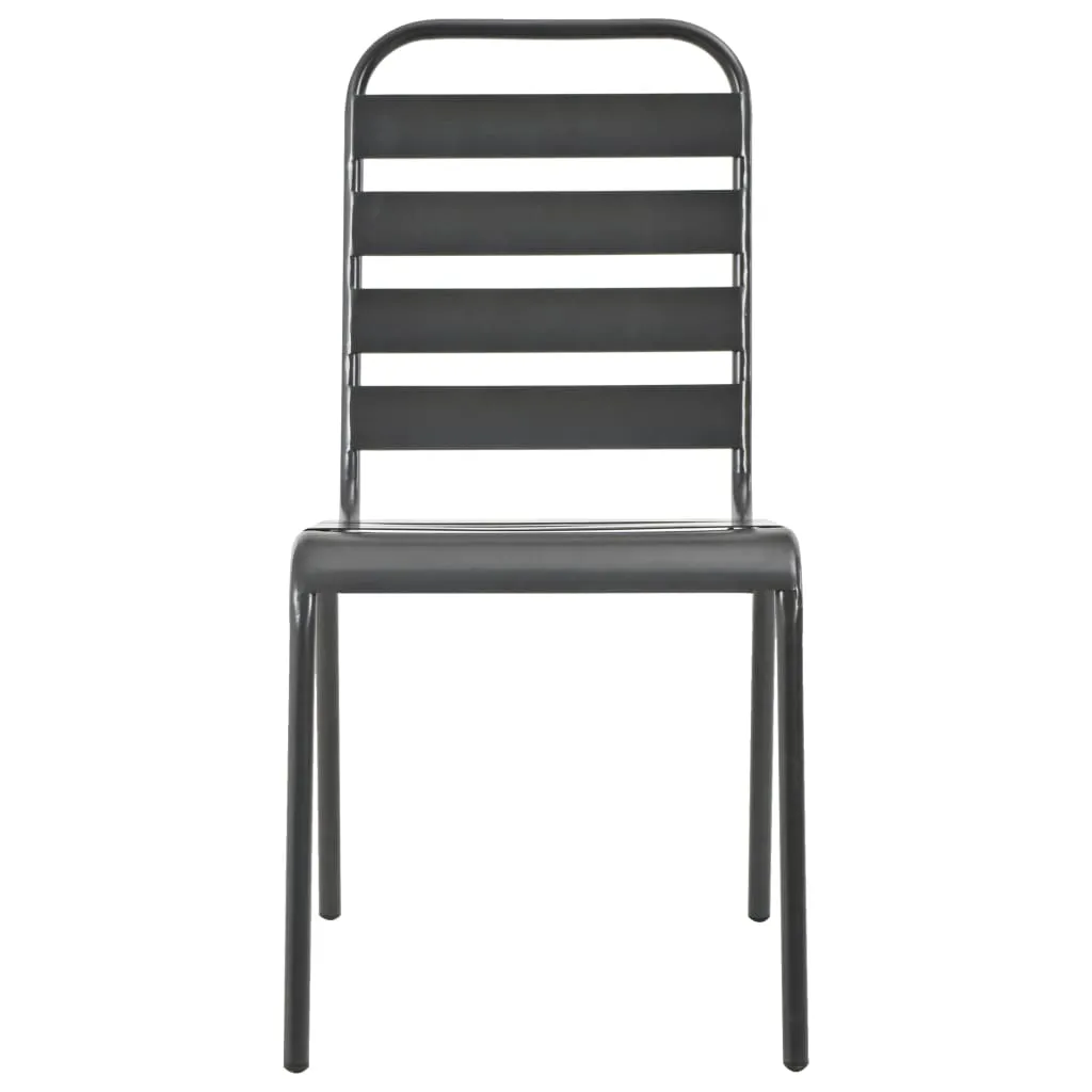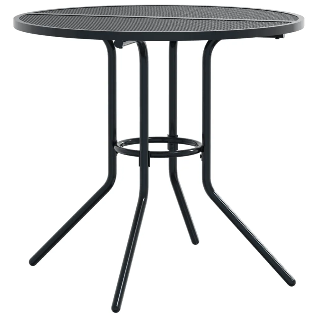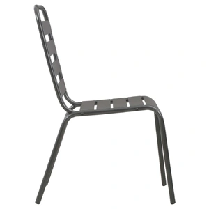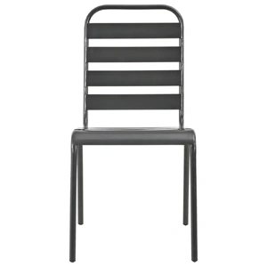 This garden chair set featuring a stylish look is a striking addition to your current outdoor and indoor living space. Powder-coated steel: This garden bar set is made of powder-coated steel, which is an exceptionally hard and strong material. It offers sturdiness and stability. The powder coating on the surface of steel creates a protective layer against rust, corrosion, and wear.Comfortable seating: The outdoor chair with its slatted seat, curved back fits your body and provides optimum comfort.Stackable function: The stackable design of the chairs save room space.Mesh tabletop: The mesh tabletop features beautiful patterns and is suitable for placing drinks, food and other essentials.Wide applications: This multifunctional outdoor chair set features a perfect shape to fit in any environment in your house. It can be used in your kitchen, dining room, living room, patio etc.