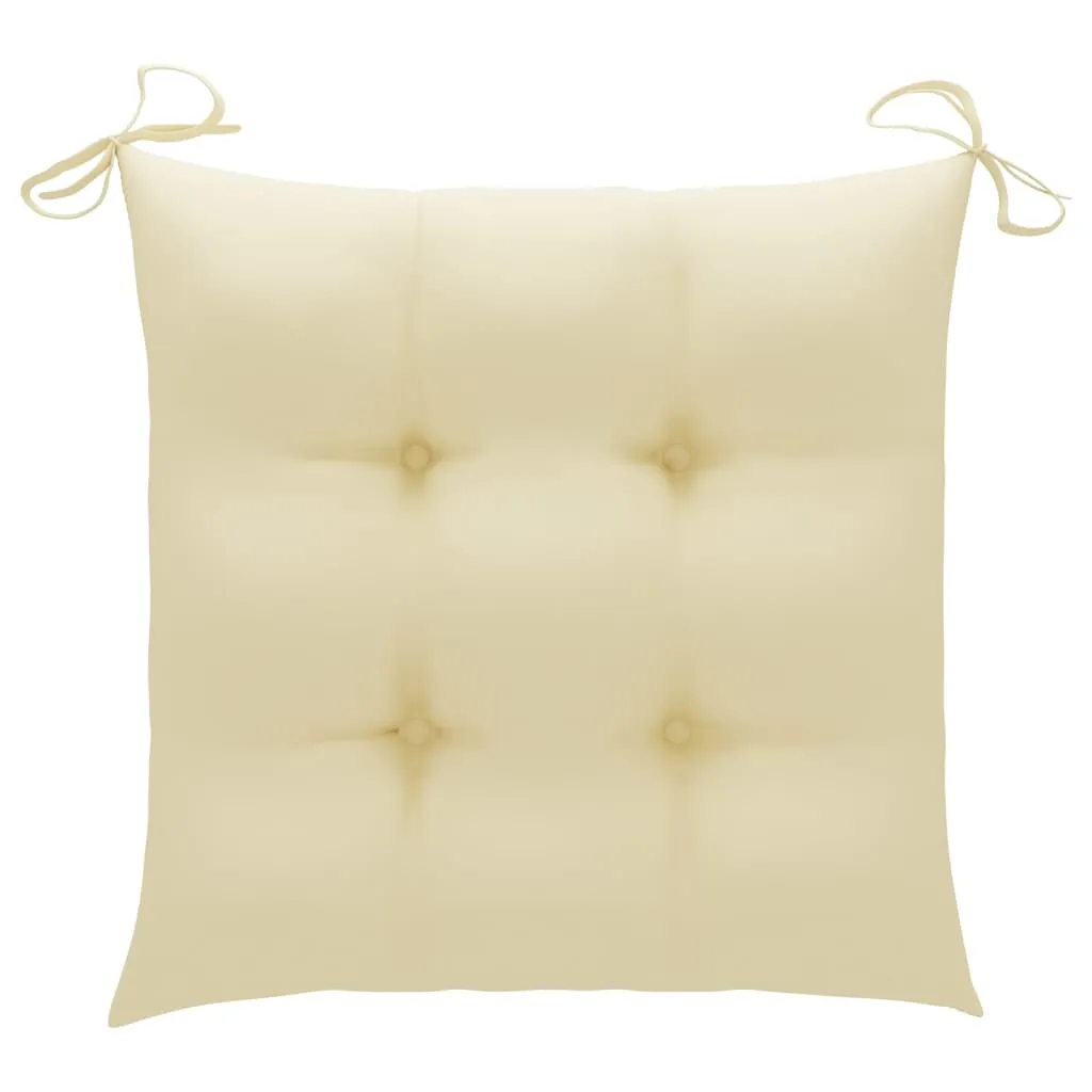Add a touch of rustic charm to your dining room, garden or patio with this wooden stacking garden chair with cushion set! The dining chair set takes your indoor or outdoor living space to a higher level with slatted and elegant design. This set of teak furniture is constructed from extremely durable teak hardwood and is seasoned, kiln-dried and fine sanded to give a very smooth appearance. Teak wood is known for its exceptional strength and weather resistance, making it far more suitable for garden furniture than any other kind of wood. Teak wood is the perfect choice if you want to purchase a long-lasting piece of garden furniture. It is easy to maintain and clean with a damp cloth. Additionally, the dining chair can be stacked to save storage space when not in use. What's more, the included cushions provide extra comfort. Each cushion has 2 sets of ropes to fix it on the chair tightly. Note: In order to extend the life of your outdoor furniture, we recommend you to protect it with a waterproof cover.