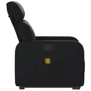 Sit back and drift away in this highly comfortable stand up massage recliner chair! Power lift function: This recliner chair for the elderly is equipped with an electric motor for the lifting-up function. Thanks to the function that pushes the entire chair up, you can easily stand without stressing your back and knees with a simple press of the button.Manual reclining function: This reclining chair has a handle on the right side. You can manually adjust the footrest and the backrest to any position as per your comfort with a simple pull of the handle. This feature allows for a maximum tilt of 135 degrees. Additionally, the backrest can go quickly back to the original place with an easy pull of the handle.Vibration function: The featured 6 massage points let you experience a better-targeted massage. Additionally, the included hand control allows you to pick different massage programs. The massage function is powered by the USB connector that requires a certified 5V USB power source (not included).Comfortable seat experience: The thickly padded seat, backrest, and wide armrests covered in faux leather provide a cosy sensation, making you feel embraced while seated. The faux leather is a highly durable material. It is resistant to stain, making it easy to clean with a damp cloth. The smooth surface also gives a luxurious look and the beauty of real leather.Convenient side pocket: This armchair has a side pocket for your remote control or keeping your essential items within easy reach.Solid and stable frame: The frame made of wood and metal provides a strong structure and stability. This reclining armchair is comfortable and durable.