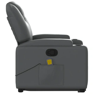 Sit back and drift away in this highly comfortable stand up massage recliner chair! Power lift function: This recliner chair for the elderly is equipped with an electric motor for the lifting-up function. Thanks to the function that pushes the entire chair up, you can easily stand without stressing your back and knees with a simple press of the button. Manual reclining function: This reclining chair has a handle on the right side. You can manually adjust the footrest and the backrest to any position as per your comfort with a simple pull of the handle. This feature allows for a maximum tilt of 135 degrees. Additionally, the backrest can go quickly back to the original place with an easy pull of the handle. Vibration function: The featured 6 massage points let you experience a better-targeted massage. Additionally, the included hand control allows you to pick different massage programs. The massage function is powered by the USB connector that requires a certified 5V USB power source (not included). Comfortable seat experience: The thickly padded seat, backrest, and wide armrests covered in faux leather provide a cosy and warm sensation, making you feel embraced while seated. The faux leather is a highly durable material. It is resistant to stain, making it easy to clean with a damp cloth. The smooth surface also gives a luxurious look and the beauty of real leather. Convenient cup holders and side pocket: This armchair has two convenient cup holders for your drinks and a side pocket for your remote control or keeping your essential items within easy reach. Solid and stable frame: The frame made of wood and metal provides a strong structure and stability. This reclining armchair is comfortable and durable.