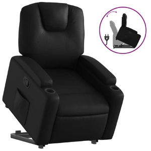 Sit back and drift away in this highly comfortable stand up recliner chair! Power lift function: This recliner chair for the elderly is equipped with an electric motor for the lifting-up function. Thanks to the function that pushes the entire chair up, you can easily stand without stressing your back and knees with a simple press of the button. Manual reclining function: This reclining chair has a handle on the right side. You can manually adjust the footrest and the backrest to any position as per your comfort with a simple pull of the handle. This feature allows for a maximum tilt of 135 degrees. Additionally, the backrest can go quickly back to the original place with an easy pull of the handle. Comfortable seat experience: The thickly padded seat, backrest, and wide armrests covered in faux leather provide a cosy and warm sensation, making you feel embraced while seated. The faux leather is a highly durable material. It is resistant to stain, making it easy to clean with a damp cloth. The smooth surface also gives a luxurious look and the beauty of real leather. Convenient cup holders and side pocket: This armchair has two convenient cup holders for your drinks and a side pocket for you to keep your essential items within easy reach. Solid and stable frame: The frame made of wood and metal provides a strong structure and stability. This reclining armchair is comfortable and durable.