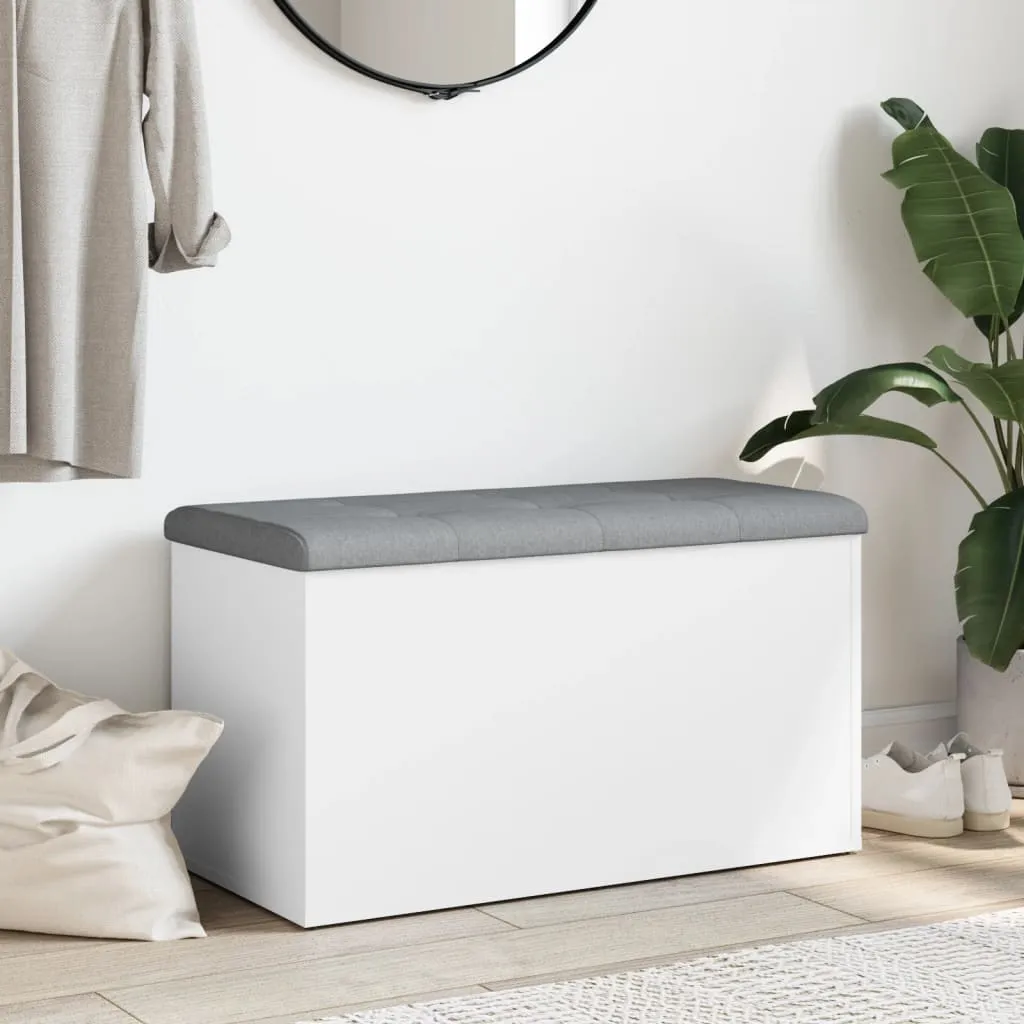 This storage bench designed for both sitting and storing will surely be an eye-catcher in your home decor. Sturdy material: The engineered wood is of exceptional quality with a smooth surface and features strength, stability and resistance to moisture.Ample storage space: The hallway bench has a large storage space for organising clothes, toys, cushions, books, or other personal belongings.Comfortable seating: Experience the ultimate comfort with the integrated thickly padded seat cushion when you sit on it.Stable hinges: The support hinges are robust enough so that the lid can be left open and then you have your hands free to tidy up your items.Versatile use: The bench is perfect to use as a shoe bench in the hallway, or a storage bench in the living room.