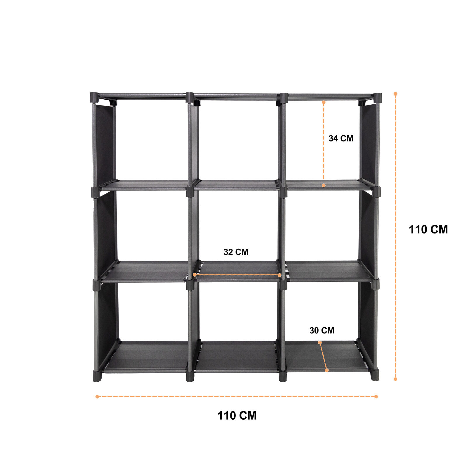 Streamline your home organization with the Sorti 9-Cube Storage Organiser, designed to keep your belongings tidy and accessible. Featuring a sturdy metal frame, strong plastic connectors, and durable fabric shelves, this organizer is built to withstand daily use while maintaining a sleek appearance.