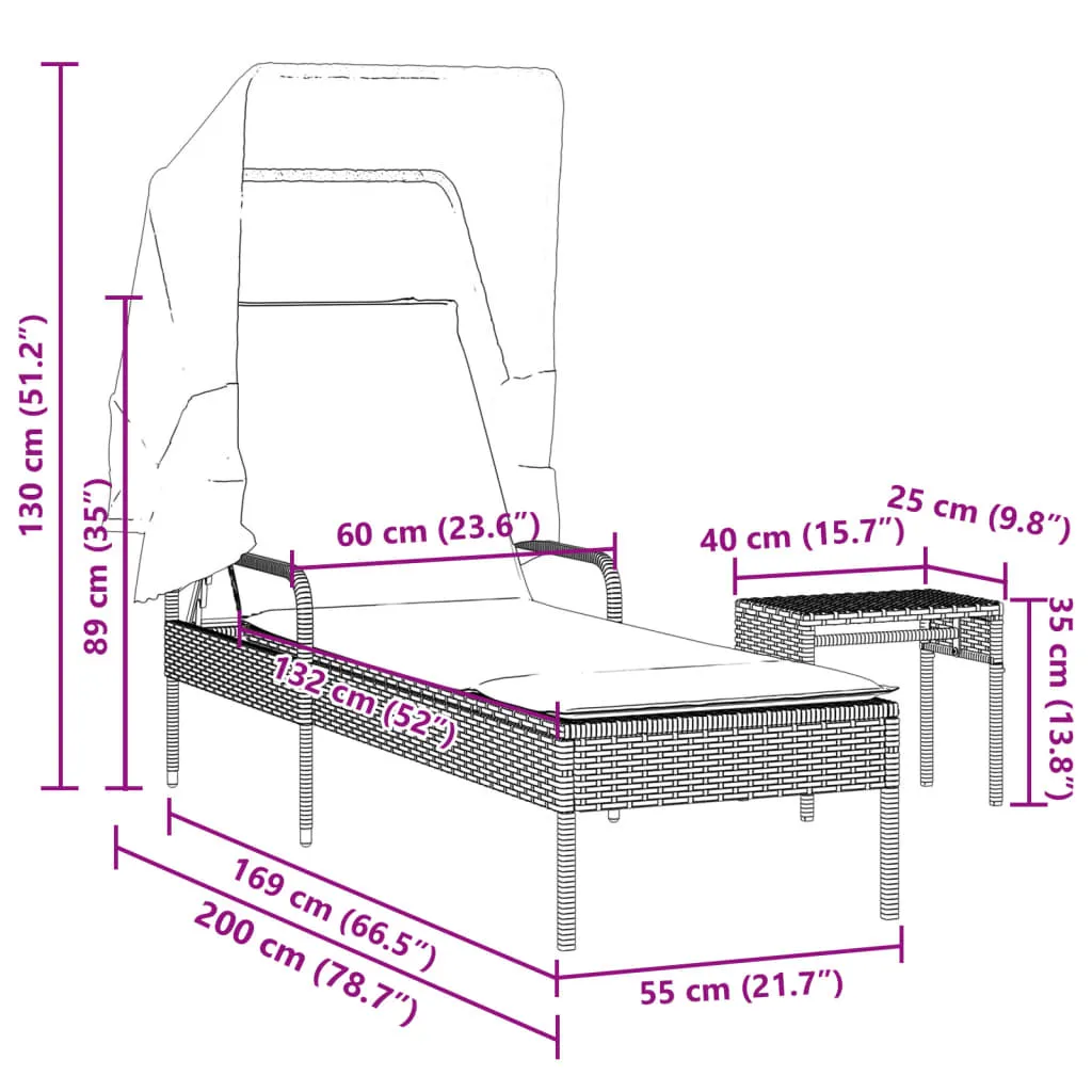 Relax and enjoy the outdoors in this comfortable sun lounger! Durable material: PE rattan, also known as poly rattan, is a strong, low-maintenance synthetic material that looks like natural rattan. It's lightweight, easy to clean, and commonly used for outdoor furniture due to its durability and weather-resistant properties. Adjustable backrest: This outdoor furniture features a backrest with 4 adjustable positions, allowing you to easily find the most comfortable and suitable position for relaxation. Retractable canopy: Thanks to the retractable canopy, you can create a cool, pleasant outdoor environment throughout the day. Convenient tea table: This outdoor furniture features a tea table, providing a convenient spot to keep your essentials within easy reach. Comfortable seat experience: This outdoor furniture, complete with a thickly padded cushion, offers a comfortable seating experience. Good to know:To make sure your outdoor furniture stays beautiful, we recommend protecting it with a waterproof cover.