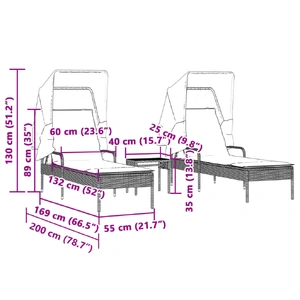 Relax and enjoy the outdoors in these comfortable sun loungers! Durable material: PE rattan, also known as poly rattan, is a strong, low-maintenance synthetic material that looks like natural rattan. It's lightweight, easy to clean, and commonly used for outdoor furniture due to its durability and weather-resistant properties.Adjustable backrest: This outdoor furniture features a backrest with 4 adjustable positions, allowing you to easily find the most comfortable and suitable position for relaxation.Retractable canopy: Thanks to the retractable canopy, you can create a cool, pleasant outdoor environment throughout the day.Convenient tea table: This outdoor furniture features a tea table, providing a convenient spot to keep your essentials within easy reach.Comfortable seat experience: This outdoor furniture, complete with a thickly padded cushion, offers a comfortable seating experience. Good to know:To make sure your outdoor furniture stays beautiful, we recommend protecting it with a waterproof cover.