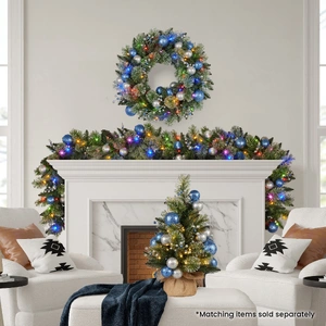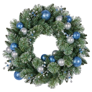 - Silver and blue baubles and berries