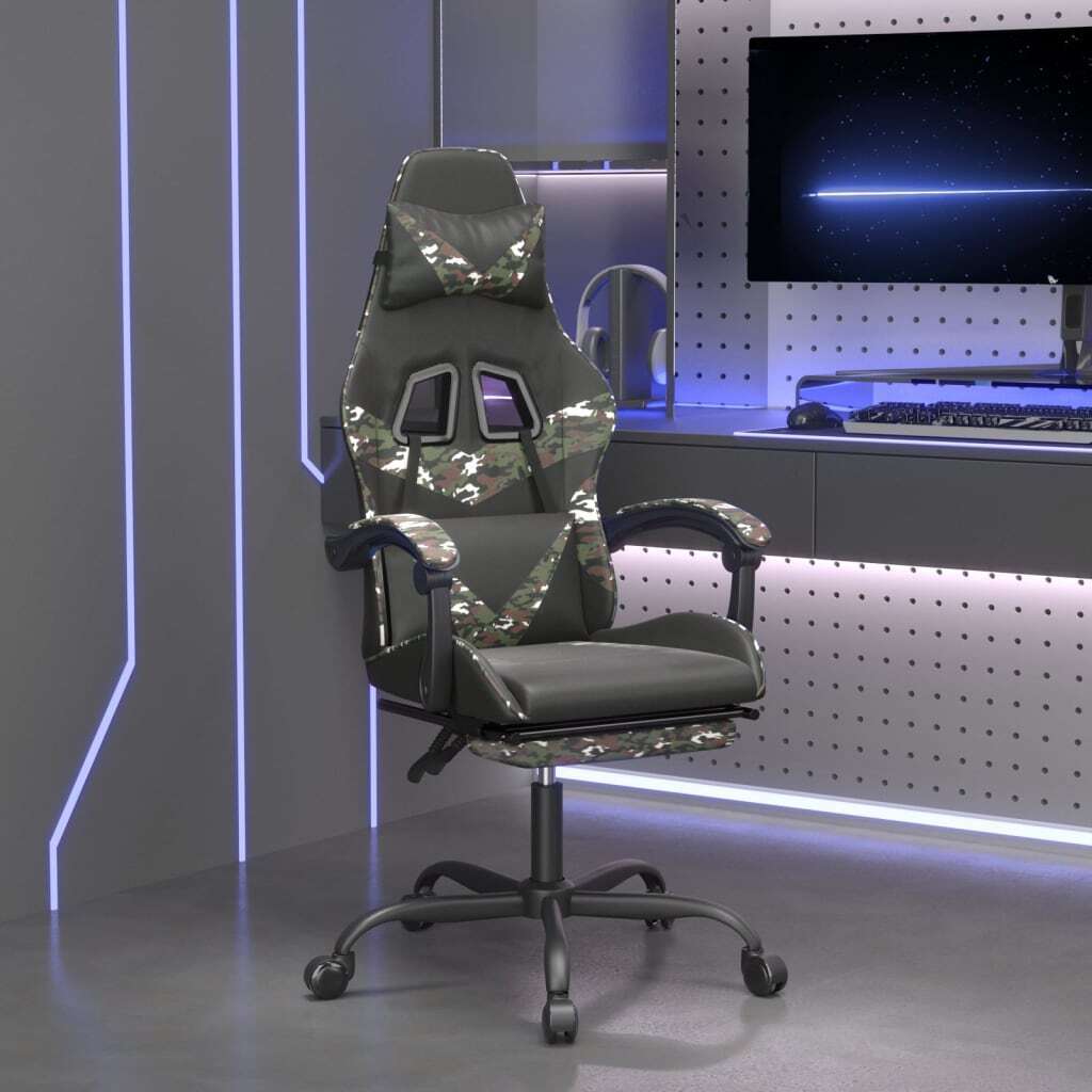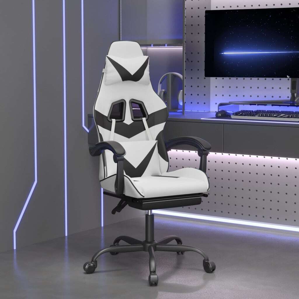Enjoy sitting on this unique gaming chair and upgrade your gaming experience with comfort! Durable faux leather: Premium faux leather is a highly durable material. It is resistant to stain, making it easy to clean with a damp cloth. The smooth surface also gives a luxurious look and the beauty of real leather.Comfortable pillows and footrest: Extra pillows are included for your comfort. These pillows relax your head and waist significantly when lying on the chair. Meanwhile, the footrest gives you extra comfort.Adjustable backrest and height: Enjoy maximum comfort by choosing your optimal position and angle with the adjustable backrest. Use the lever to adjust the height of your seat to your liking.Convenient design: The 360 degree swivel design allows a wider range of motion. Additionally, it is convenient to move around with rolling castors.Sturdy frame: The metal and plywood frames ensure sturdiness and stability. Note:Each product comes with an assembly manual in the box for easy assembly.The product has a USB connector, but the certified 5V USB power source is not included.