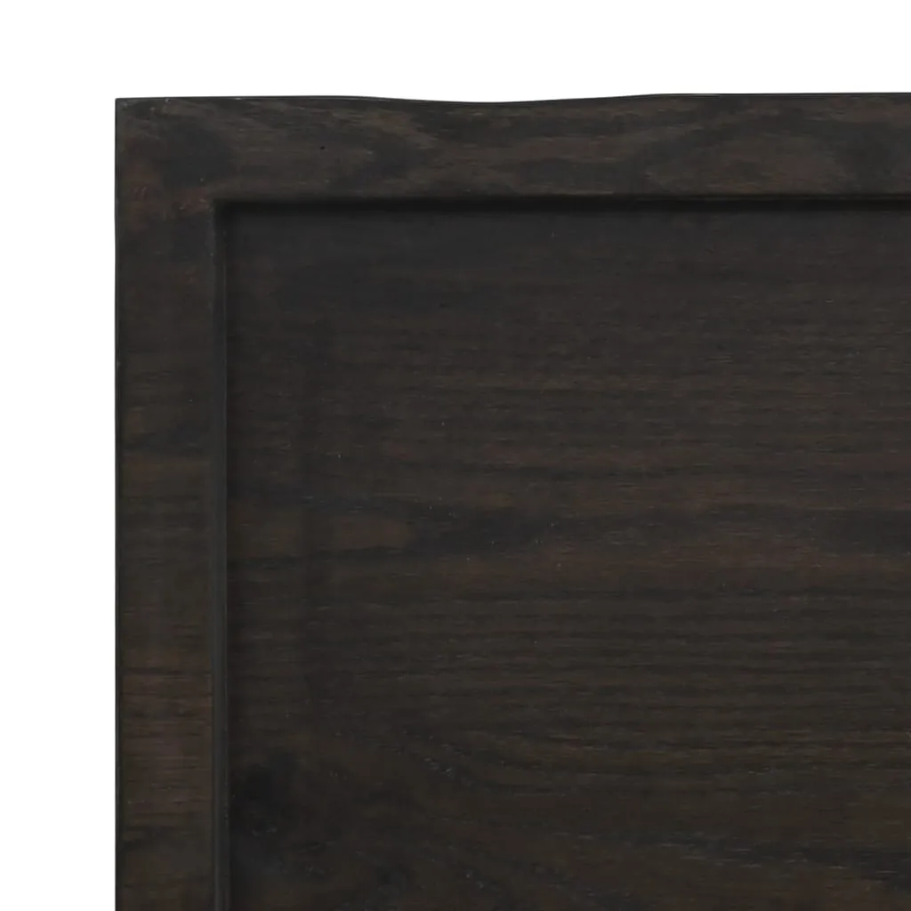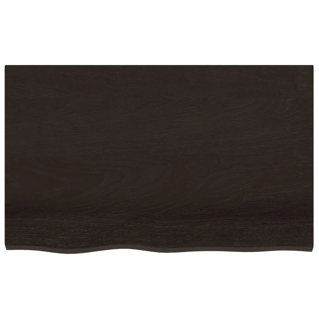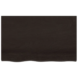Give a new life to your table with this wooden table top. It is an excellent solution for freshening up your table at home or in a commercial setting. Solid oak wood: The tabletop is made of solid oak wood, which is a beautiful natural material. Oak wood has a medium brown colour and a dense grain, contributing to its unique look.Versatile applications: The replacement table top can be combined with different bases according to your needs.Treated surface: The replacement board has been treated with dark paint, so it is ready for use as an additional finish is not required.Handmade with live edge: The DIY board is meticulously handcrafted, showcasing a live edge that adds to its natural charm. Every piece of shelf has its own unique character to display. The delivery is random, ensuring the exclusivity and individuality of your product. Good to know:As a natural product, wood may show knots and imperfections that we fill with black fillings to ensure a smooth appearance.