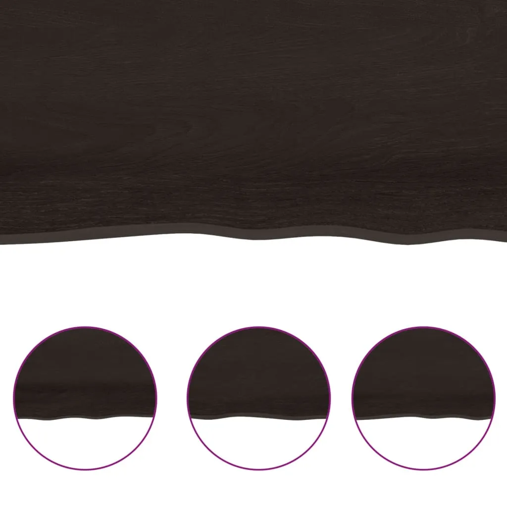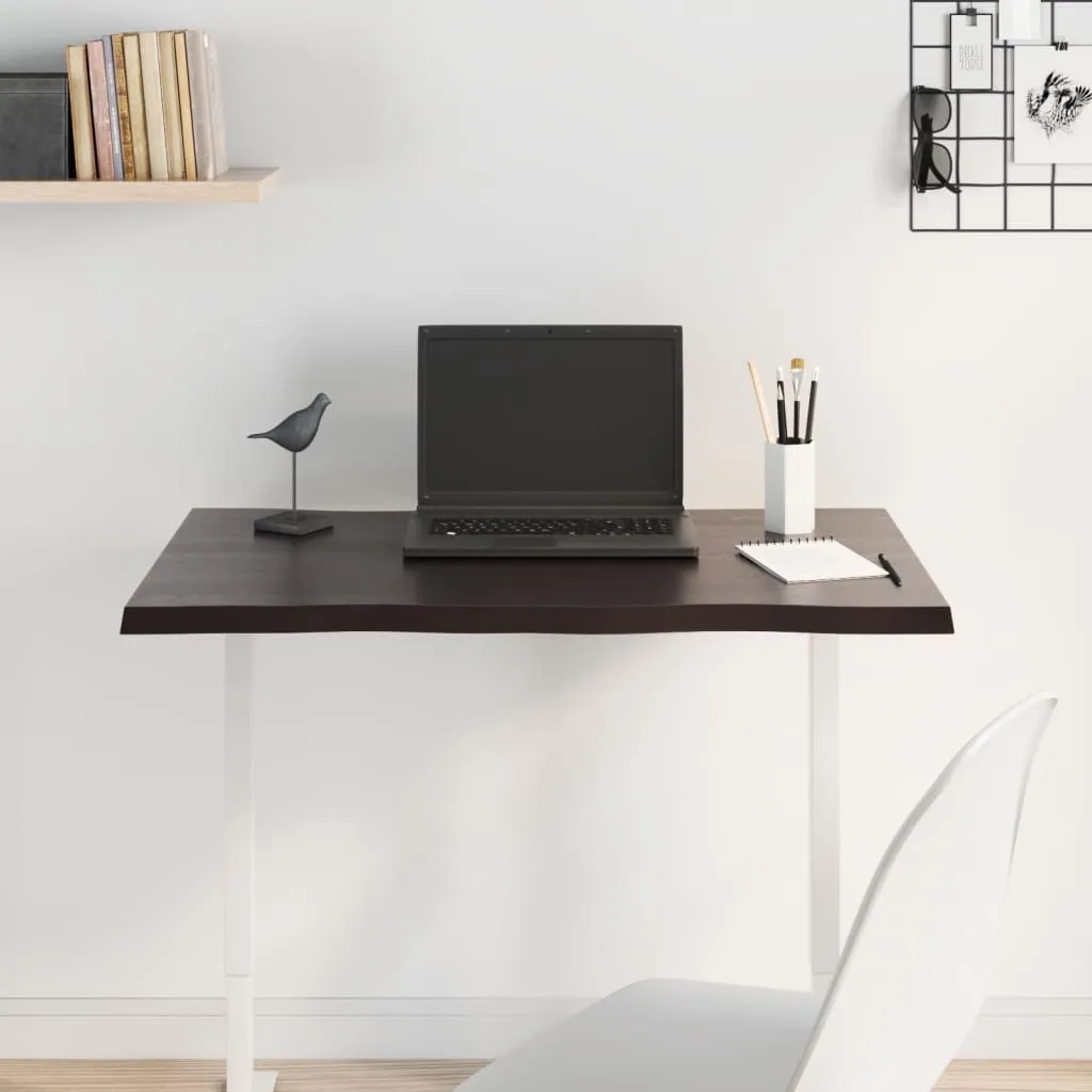 Give a new life to your table with this wooden table top. It is an excellent solution for freshening up your table at home or in a commercial setting. Solid oak wood: The tabletop is made of solid oak wood, which is a beautiful natural material. Oak wood has a medium brown colour and a dense grain, contributing to its unique look.Versatile applications: The replacement table top can be combined with different bases according to your needs.Treated surface: The replacement board has been treated with dark paint, so it is ready for use as an additional finish is not required.Handmade with live edge: The DIY board is meticulously handcrafted, showcasing a live edge that adds to its natural charm. Due to that the knots, cracks, slightly curved shapes, and colour tones are part of the oak wood. Every piece has its own unique character to display. The delivery is random, ensuring the exclusivity and individuality of your product. Good to know:As a natural product, wood may show knots and imperfections that we fill with black fillings to ensure a smooth appearance.
