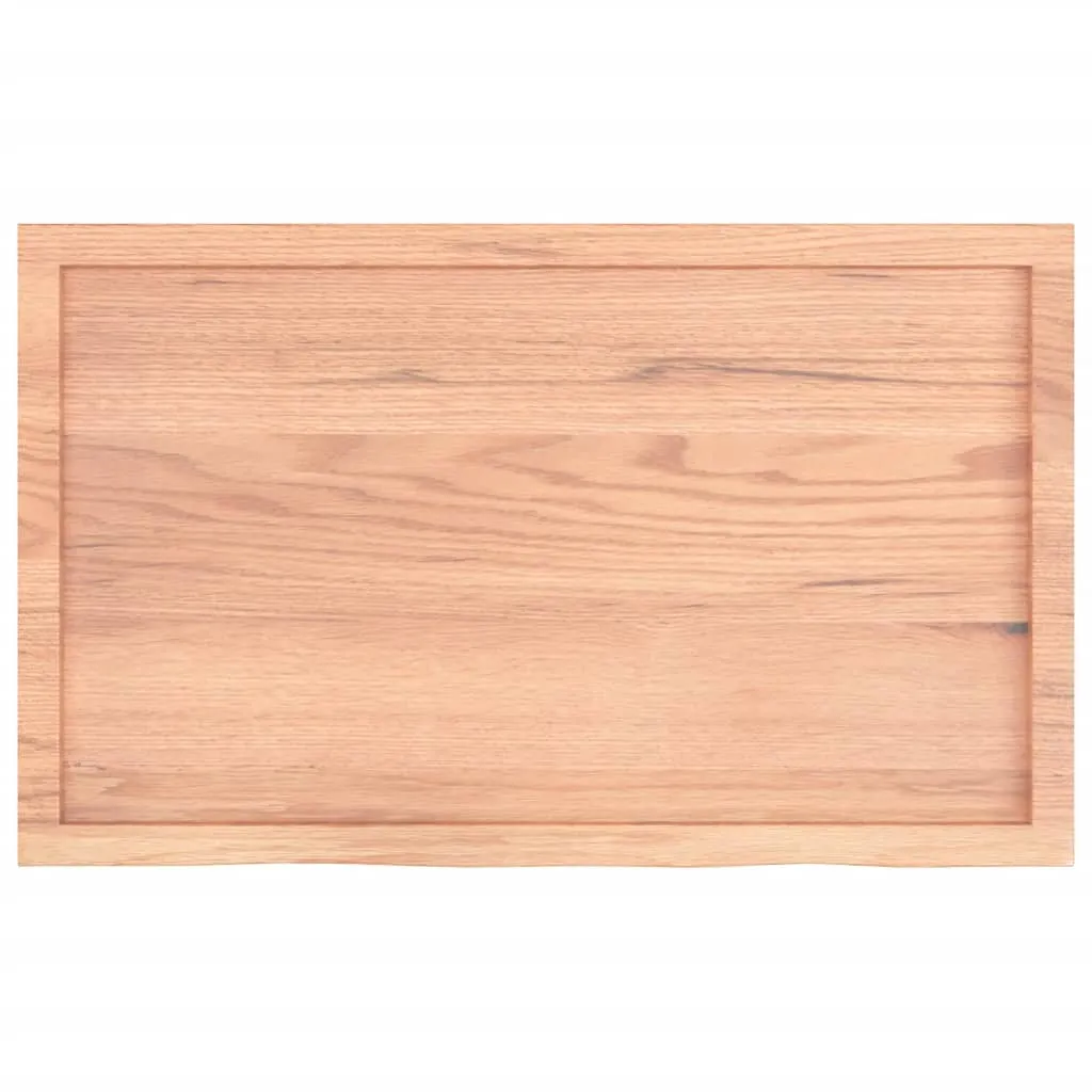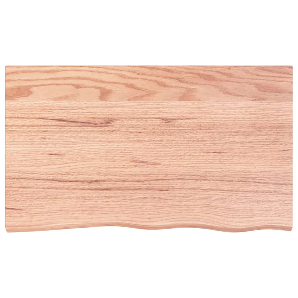 Give a new life to your table with this wooden table top. It is an excellent solution for freshening up your table at home or in a commercial setting. Solid oak wood: The tabletop is made of solid oak wood, which is a beautiful natural material. Oak wood has a medium brown colour and a dense grain, contributing to its unique look.Versatile applications: The replacement table top can be combined with different bases according to your needs.Treated surface: The replacement board has been varnished so it is ready for use as an additional finish is not required.Handmade with live edge: The DIY board is meticulously handcrafted, showcasing a live edge that adds to its natural charm. Every piece of shelf has its own unique character to display. The delivery is random, ensuring the exclusivity and individuality of your product. Good to know:As a natural product, wood may show knots and imperfections that we fill with black fillings to ensure a smooth appearance.