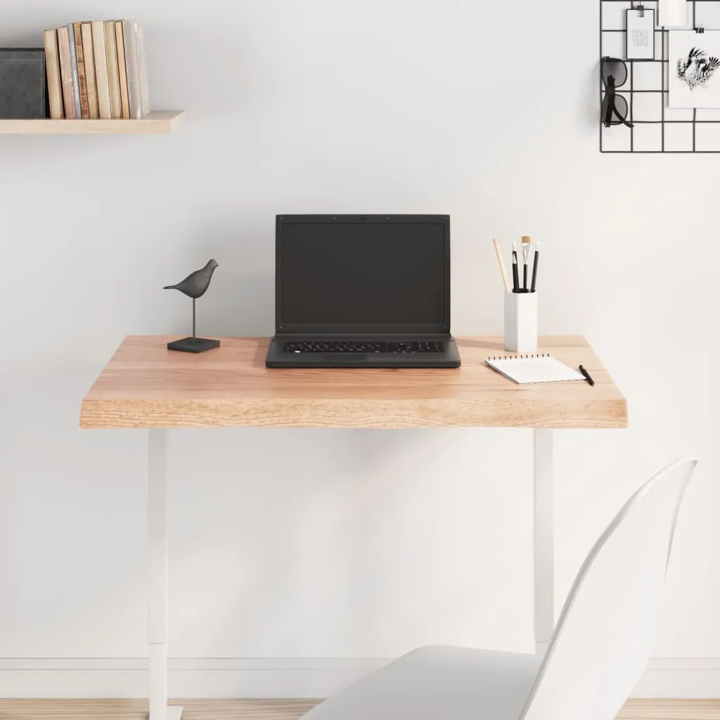 Give a new life to your table with this wooden table top. It is an excellent solution for freshening up your table at home or in a commercial setting. Solid oak wood: The tabletop is made of solid oak wood, which is a beautiful natural material. Oak wood has a medium brown colour and a dense grain, contributing to its unique look.Versatile applications: The replacement table top can be combined with different bases according to your needs.Treated surface: The replacement board has been varnished so it is ready for use as an additional finish is not required.Handmade with live edge: The DIY board is meticulously handcrafted, showcasing a live edge that adds to its natural charm. Due to that the knots, cracks, slightly curved shapes, and colour tones are part of the oak wood. Every piece has its own unique character to display. The delivery is random, ensuring the exclusivity and individuality of your product. Good to know:As a natural product, wood may show knots and imperfections that we fill with black fillings to ensure a smooth appearance.
